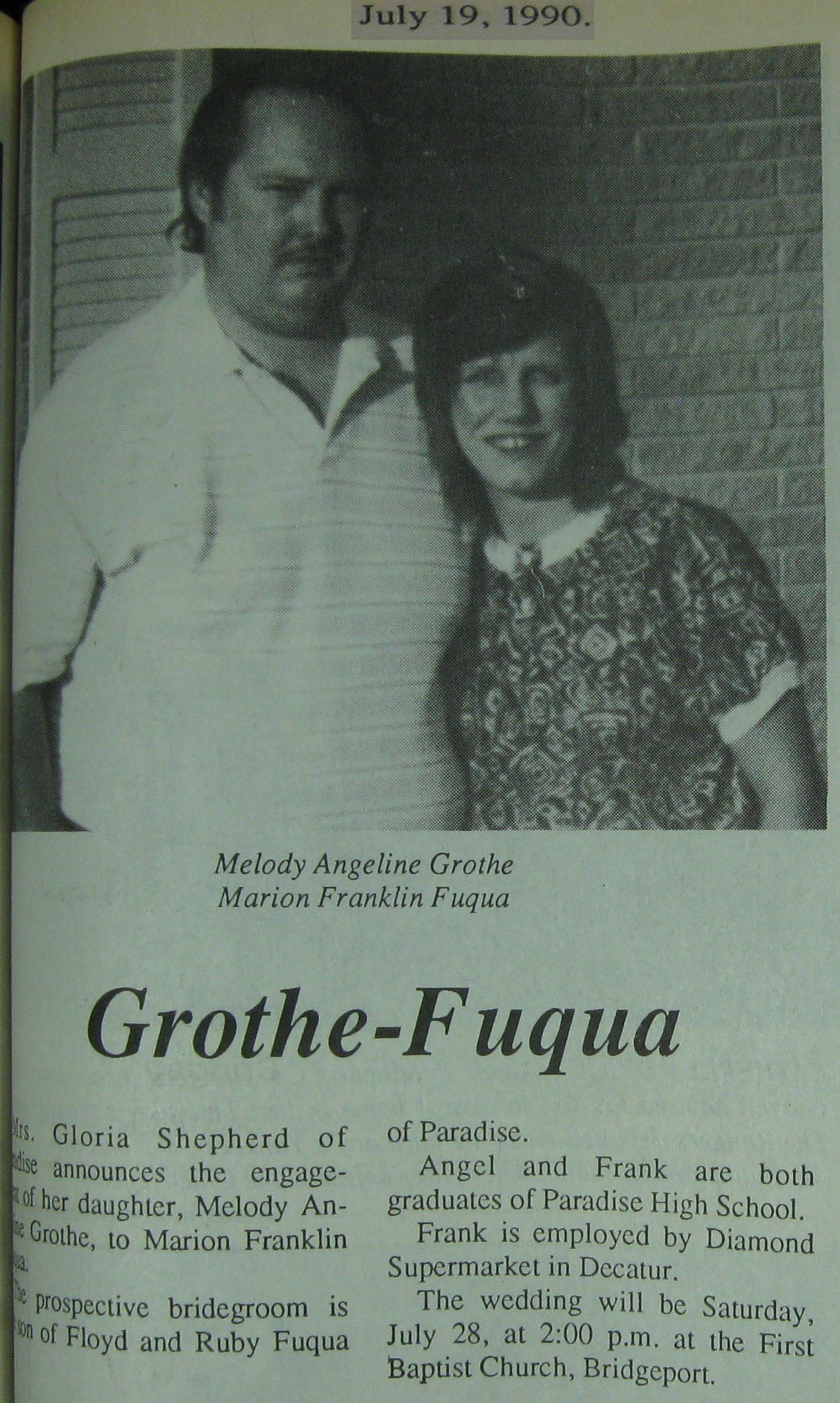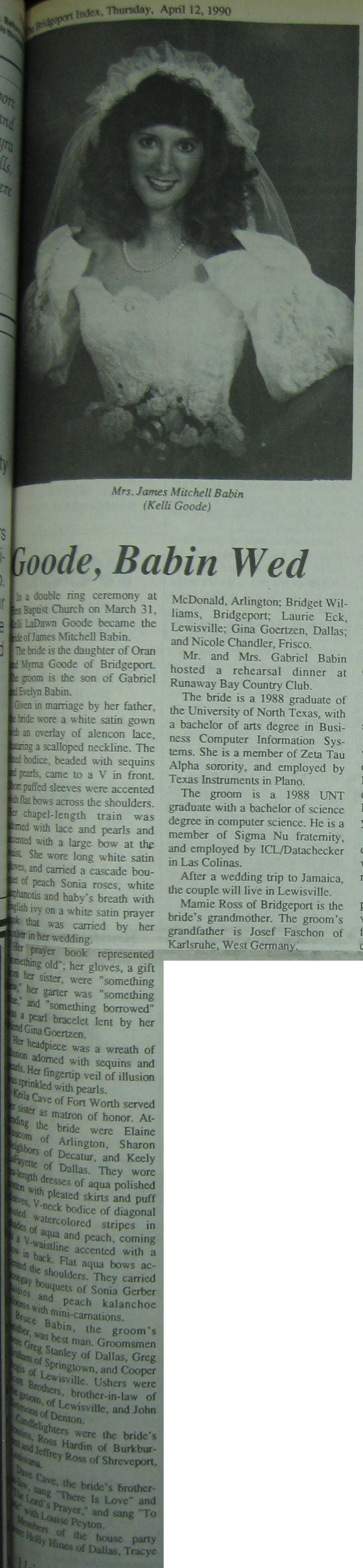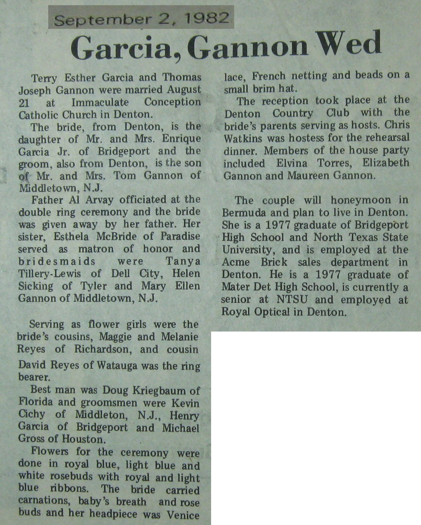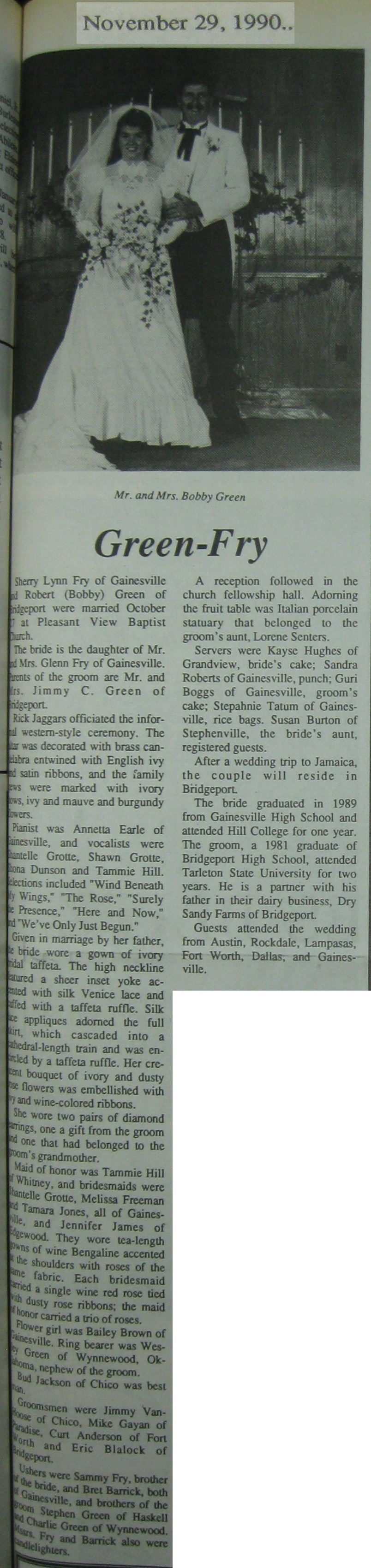Groom or Bride's Name --- Year of Newspaper Article