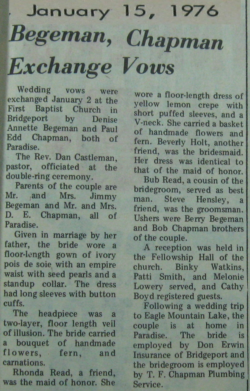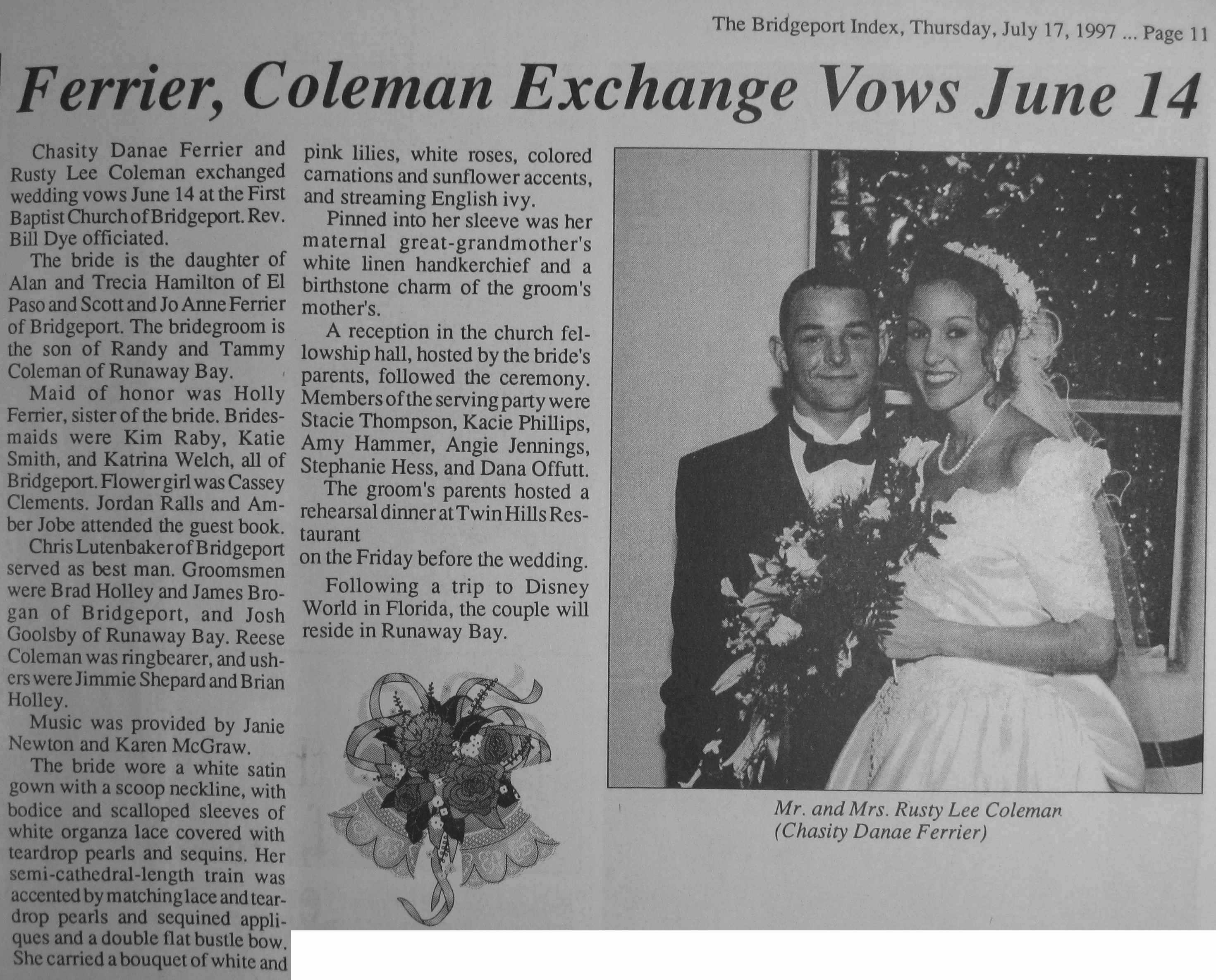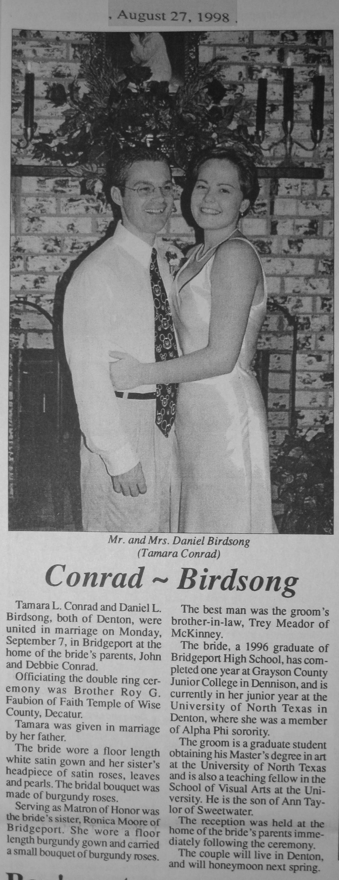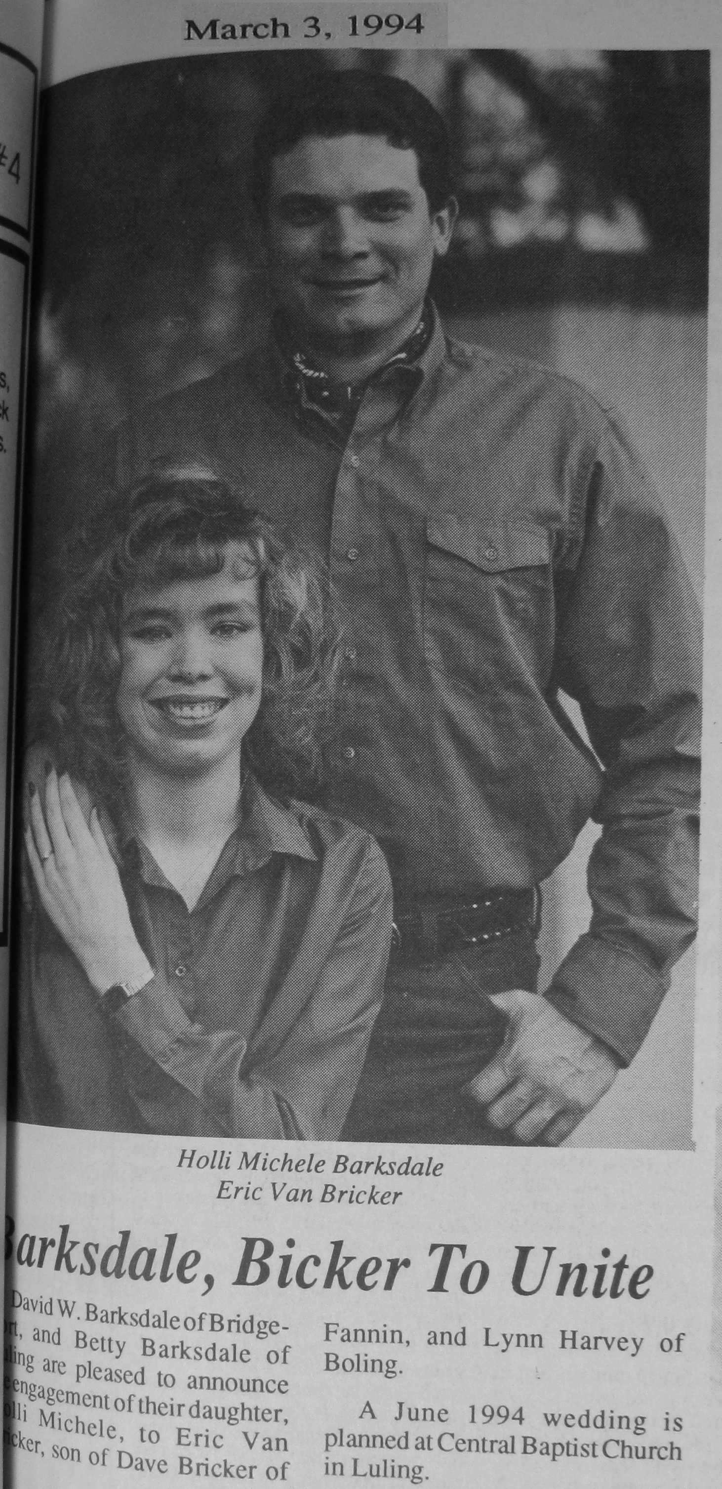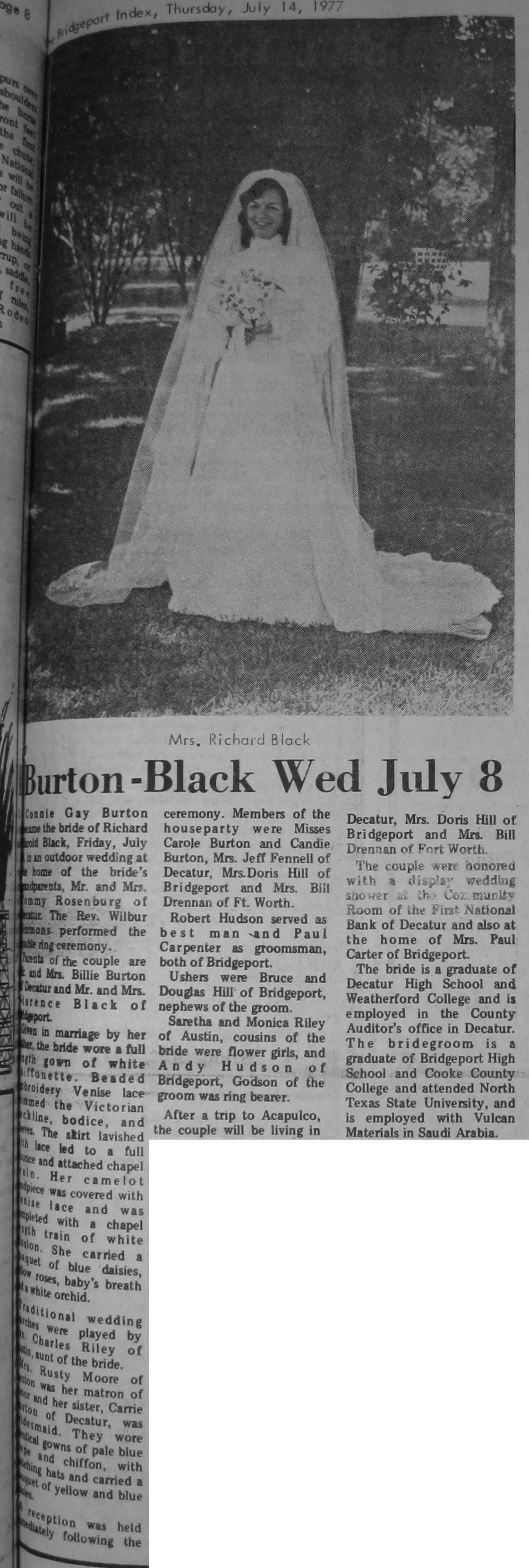 Groom or Bride's Name --- Year of Newspaper Article