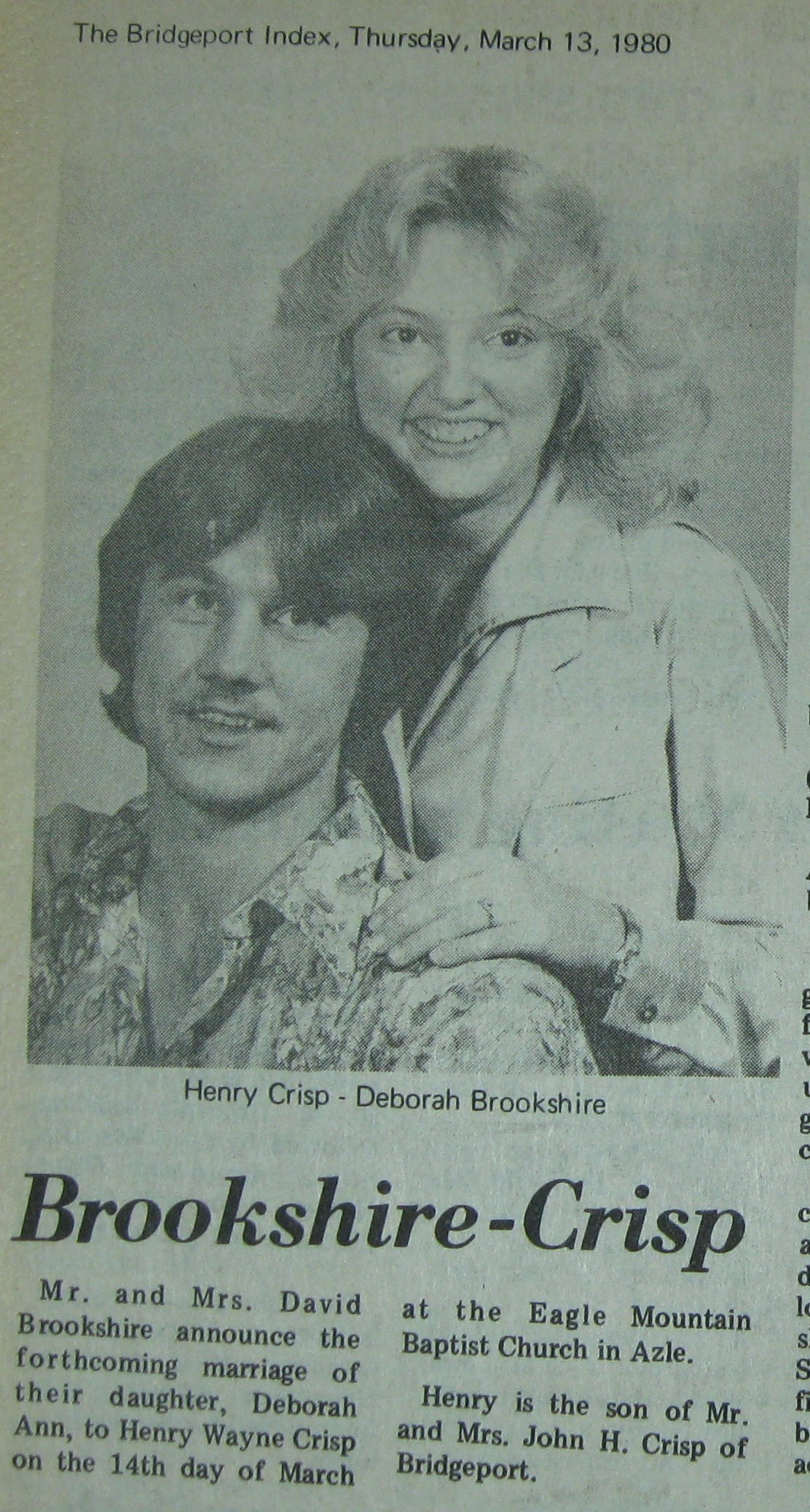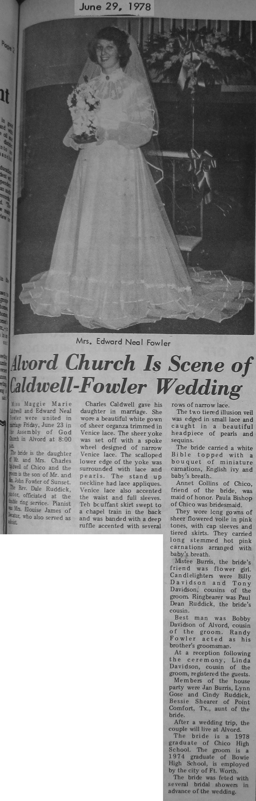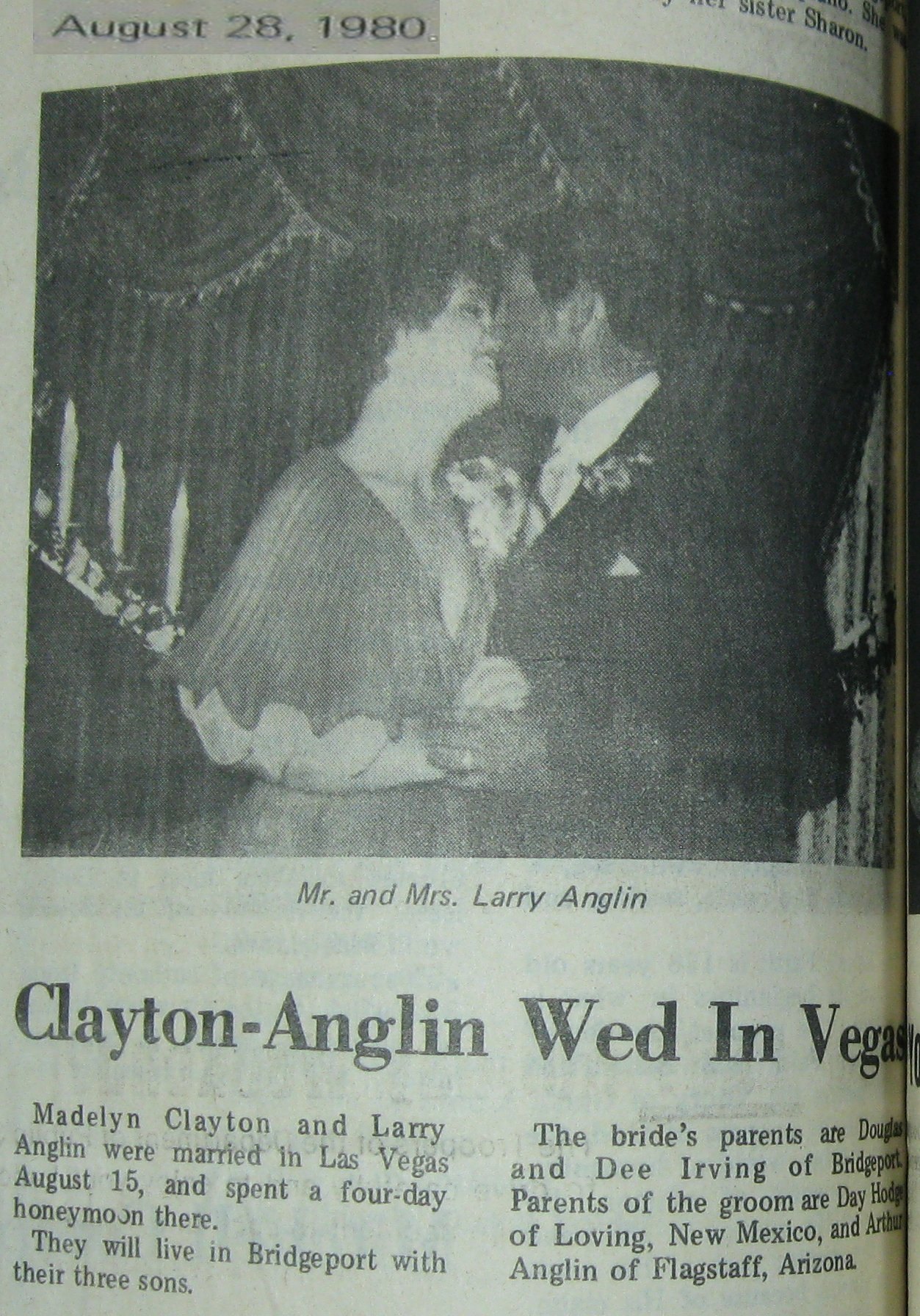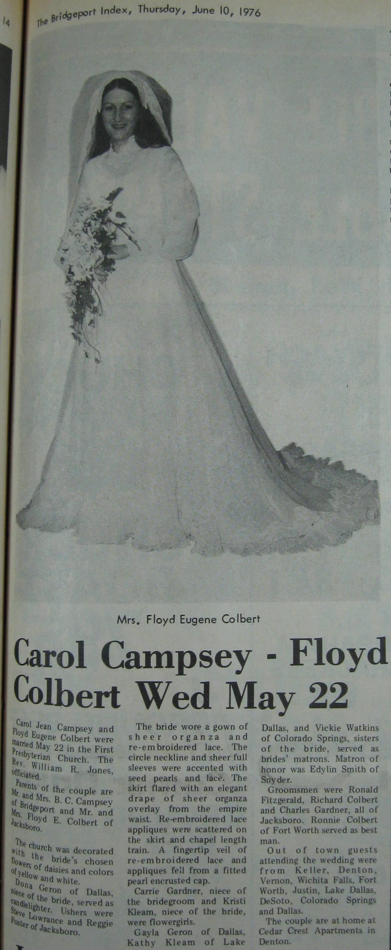 Groom or Bride's Name --- Year of Newspaper Article