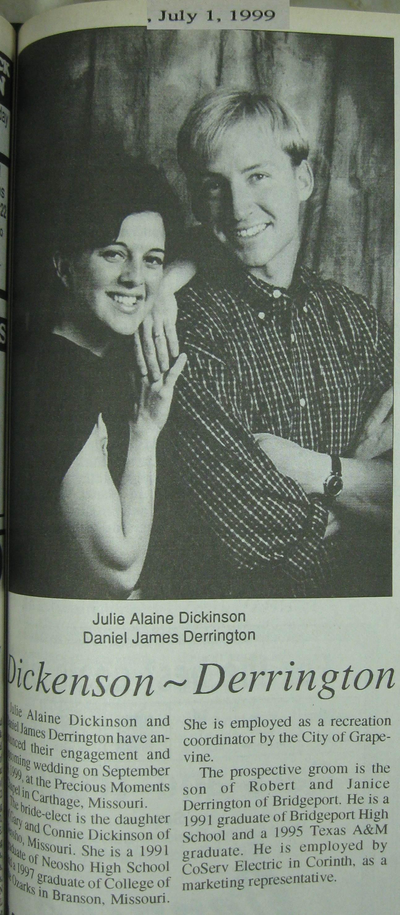 ('Usually' a 2 after the name will be a second article-engagement then wedding)