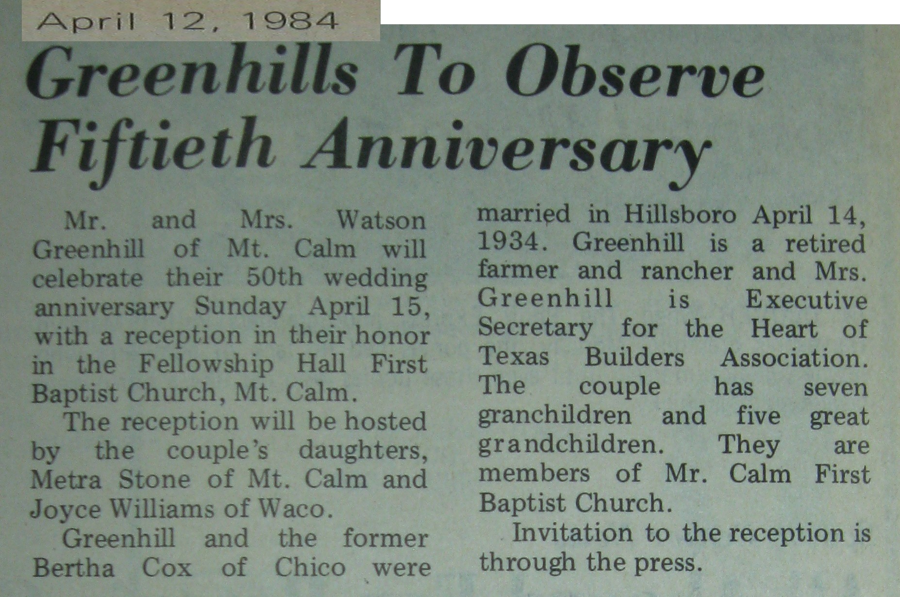 / Cox, Bertha ---1984-50th Anniv.