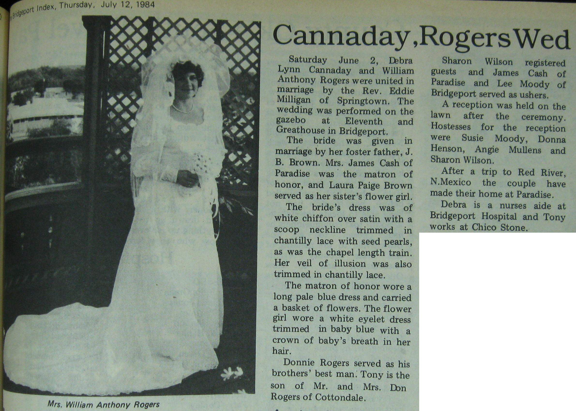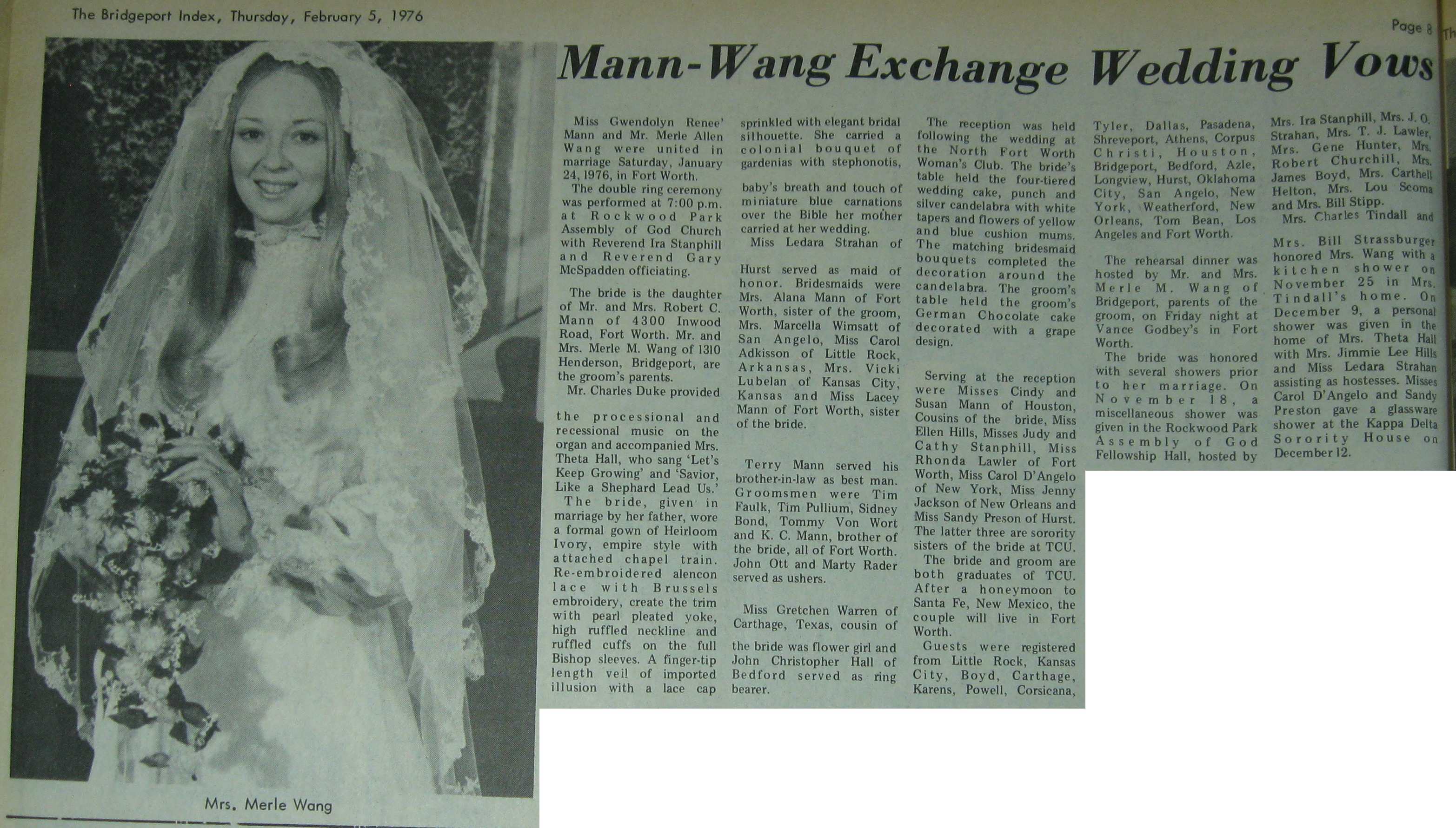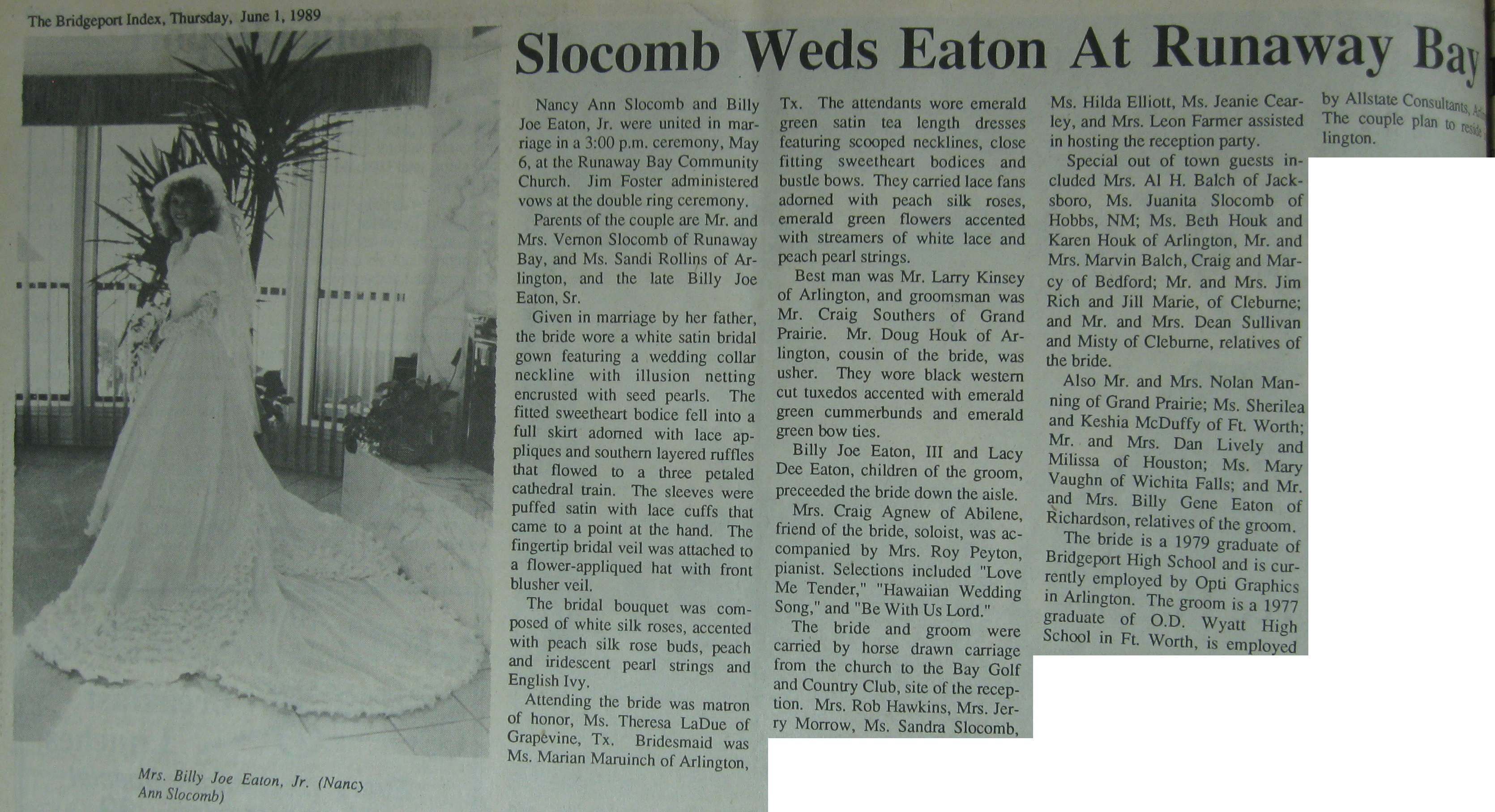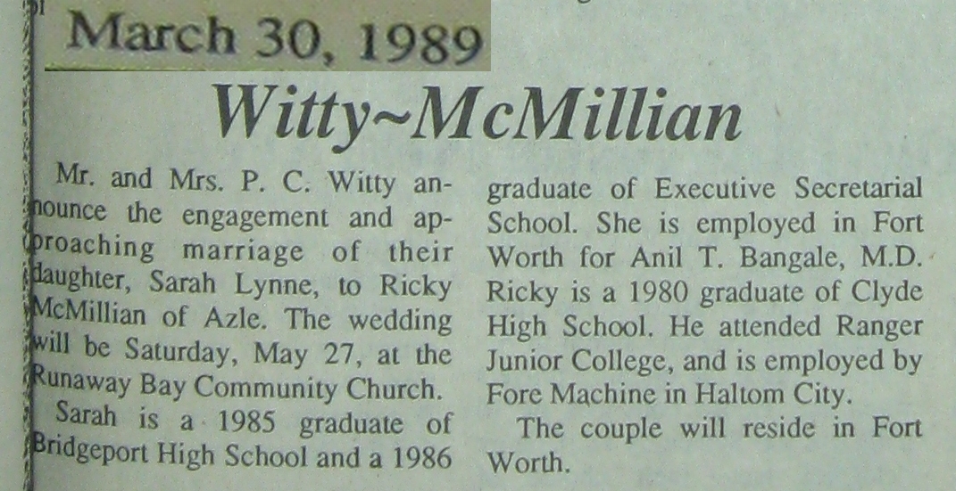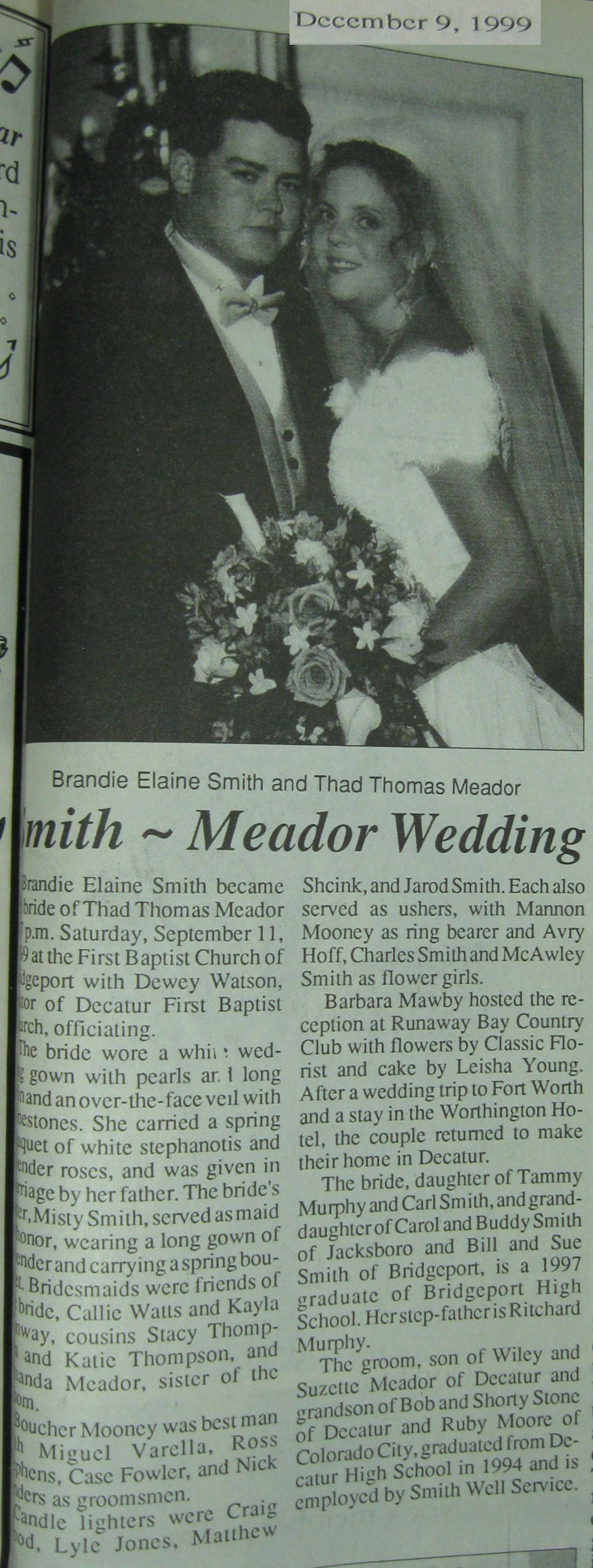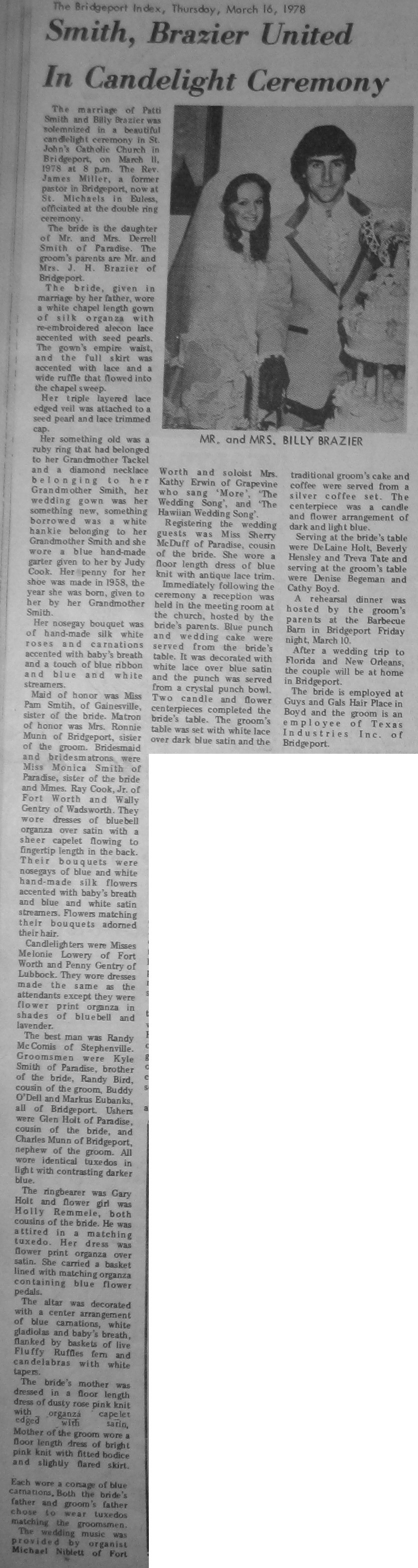 Groom or Bride's Name --- Year of Newspaper Article