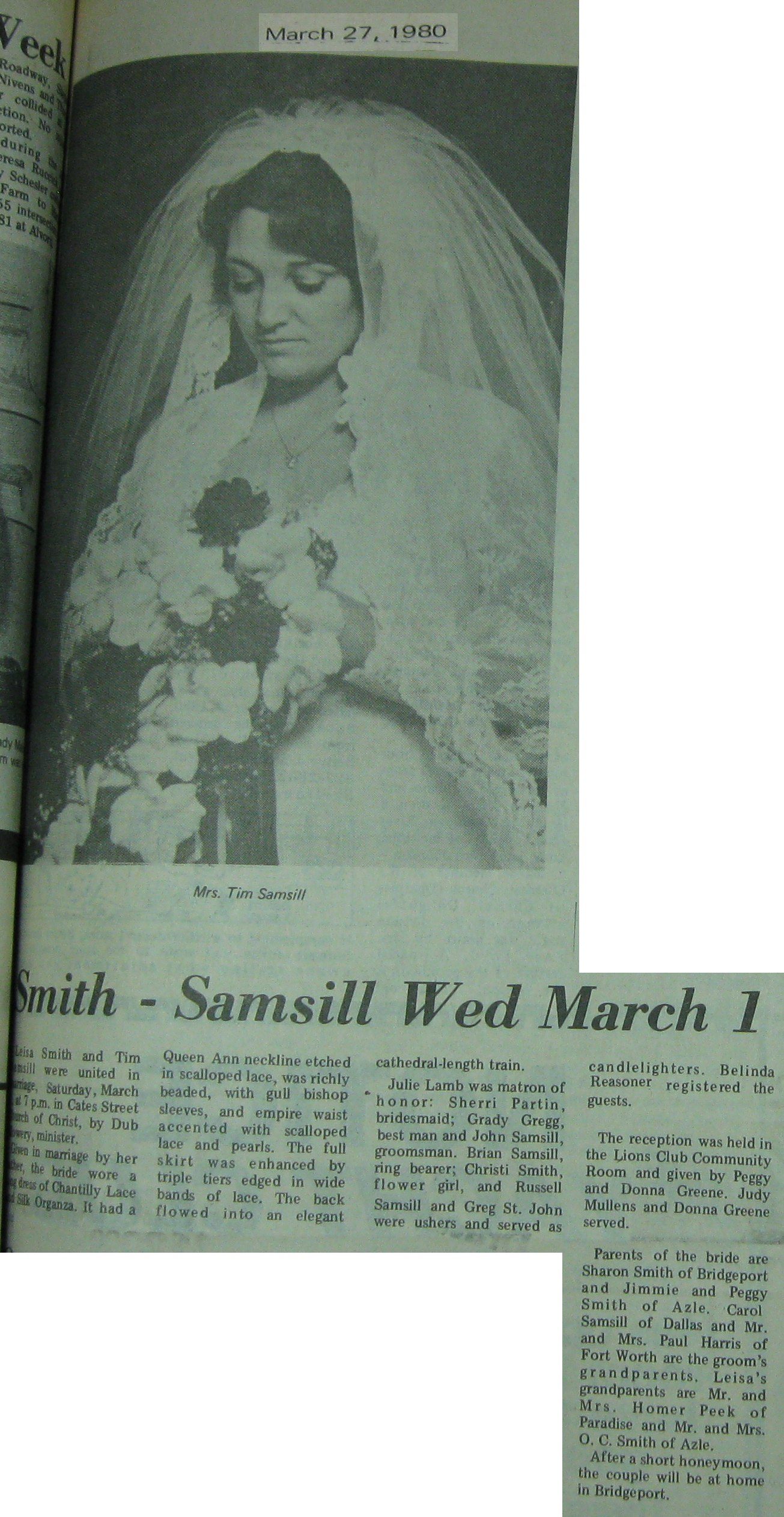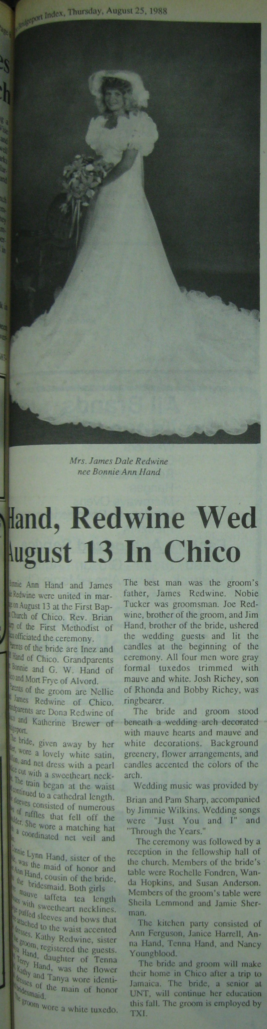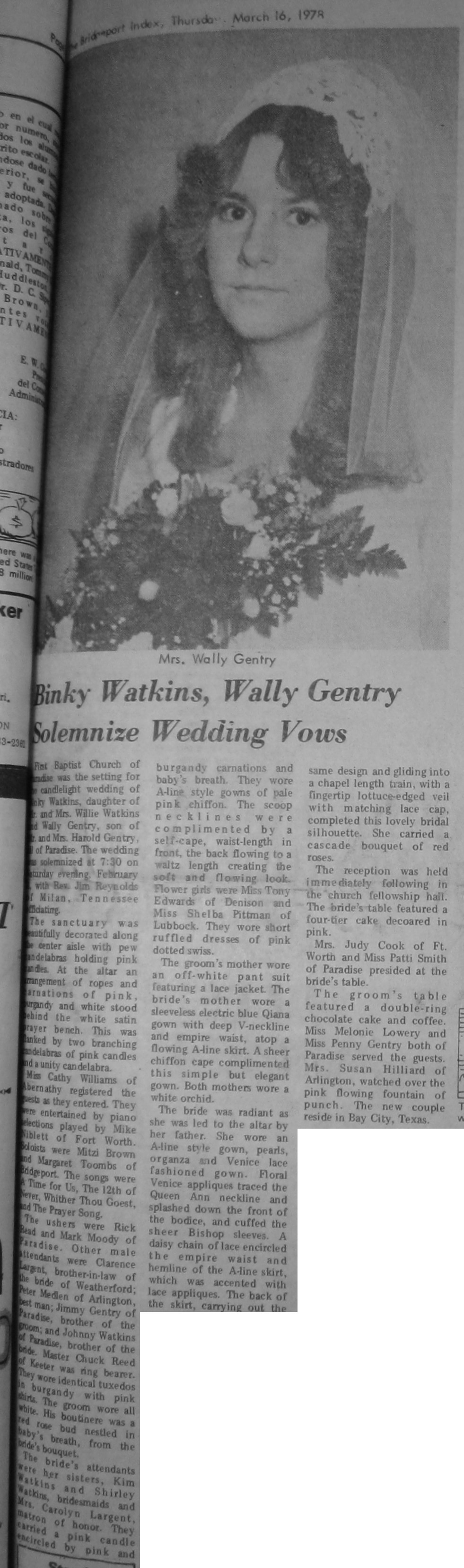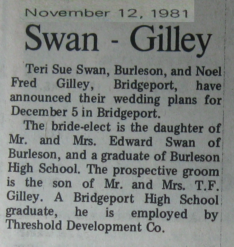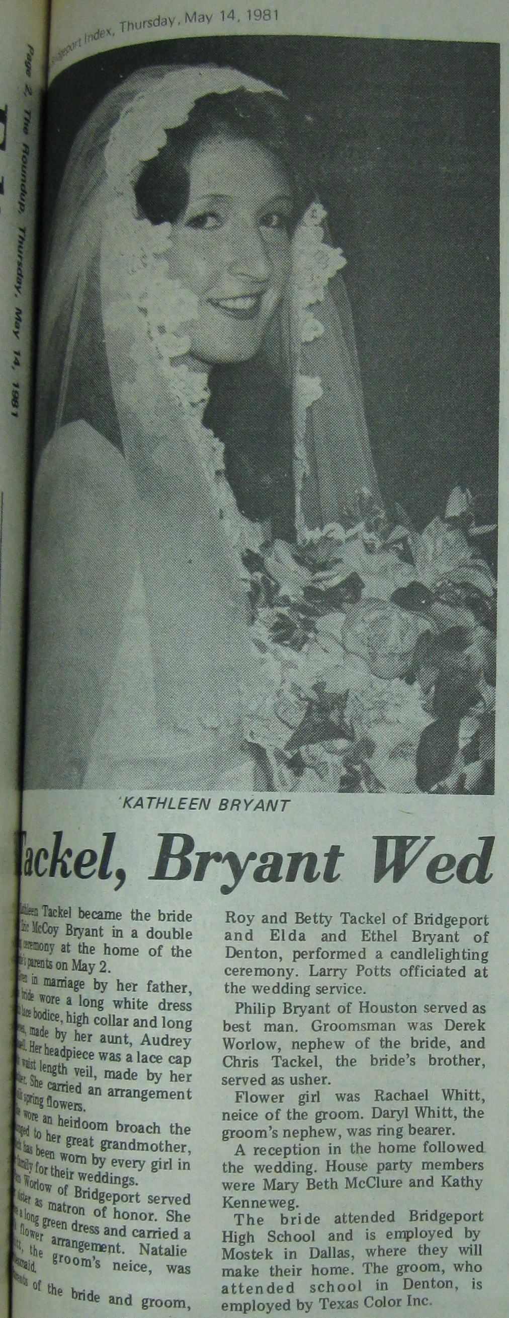 Groom or Bride's Name --- Year of Newspaper Article