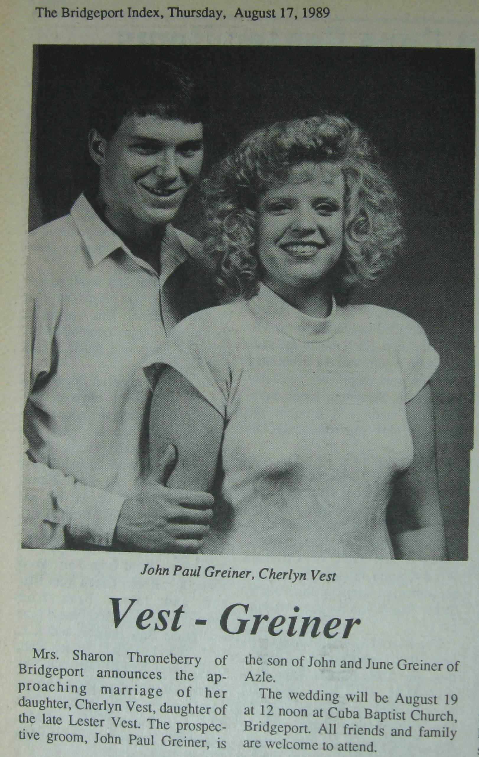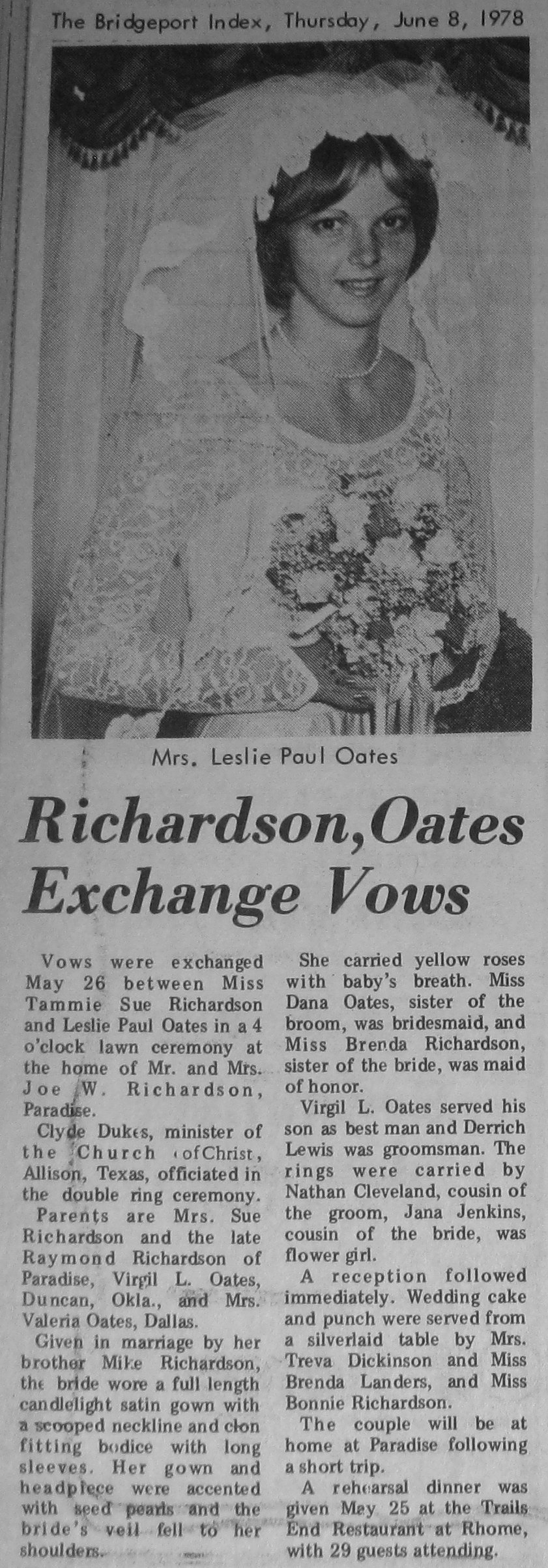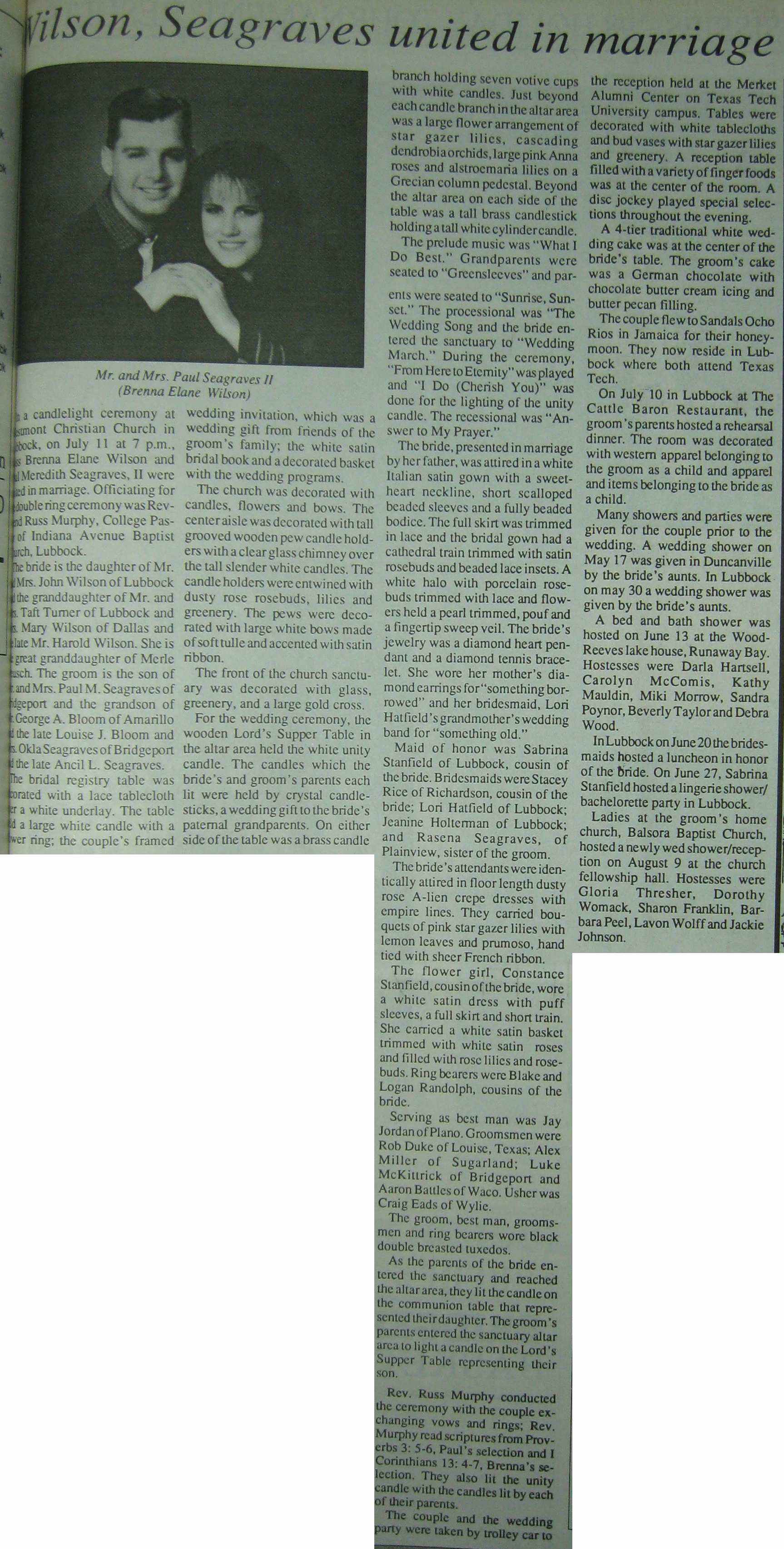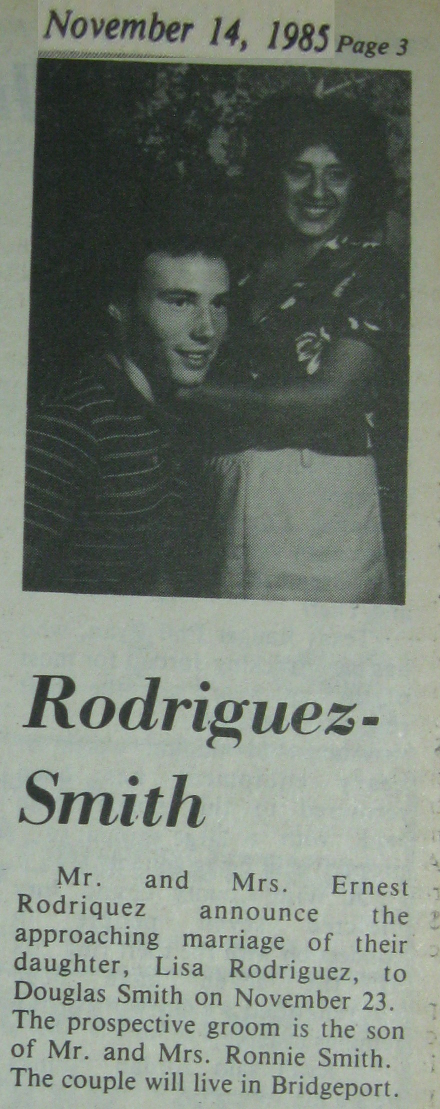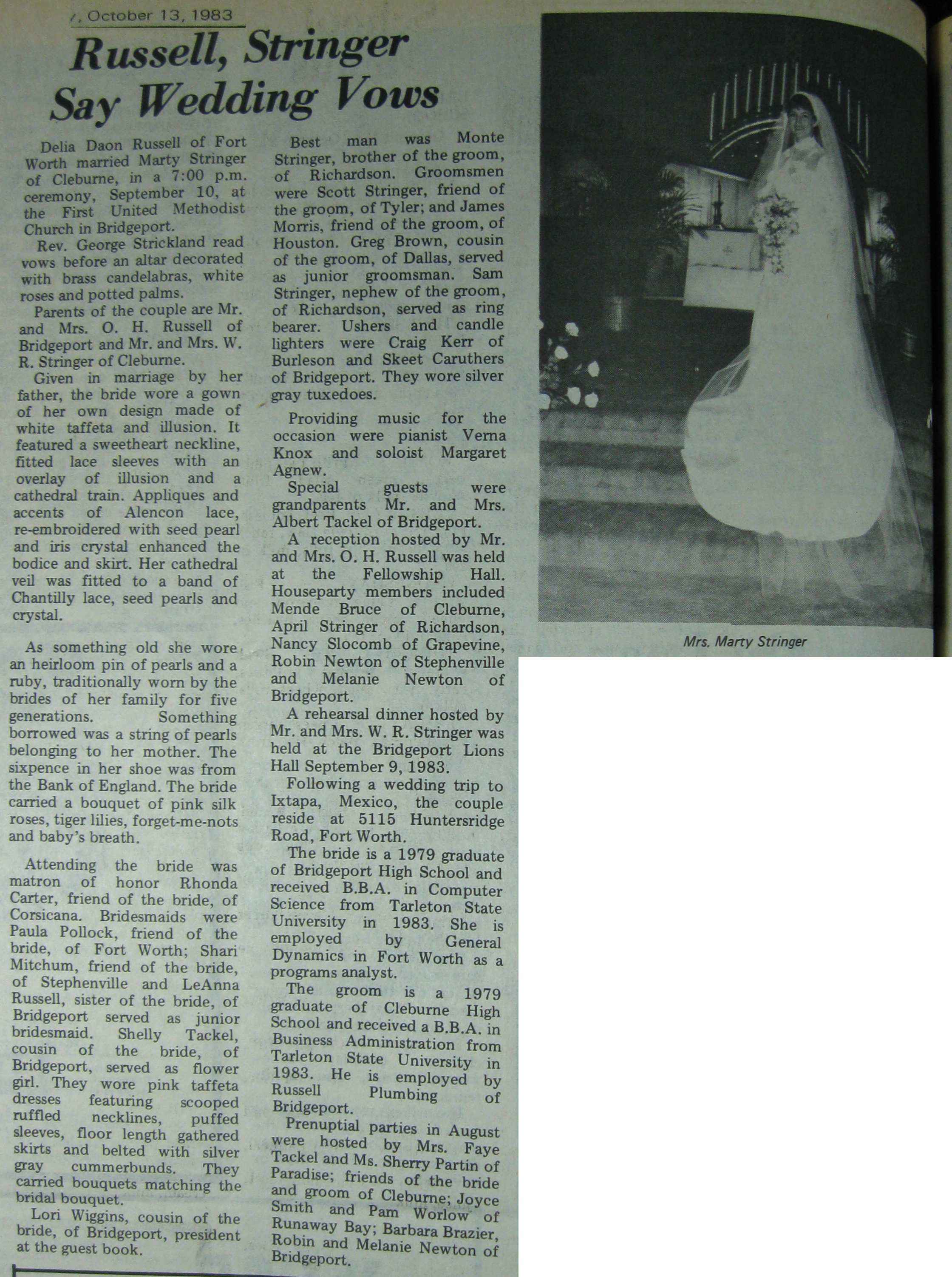 Groom or Bride's Name --- Year of Newspaper Article