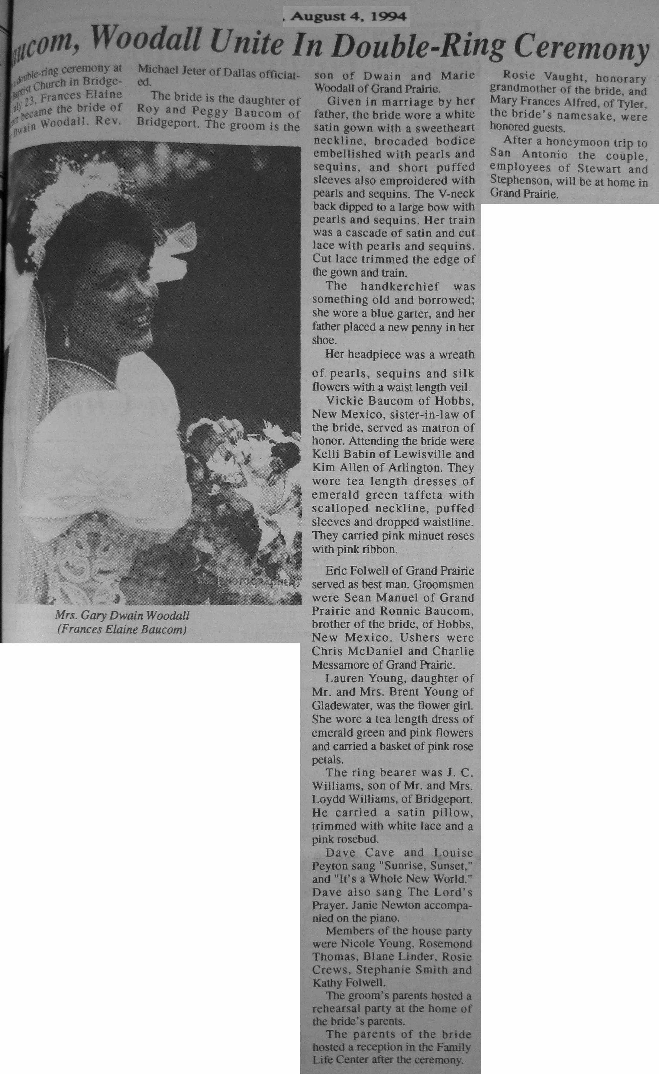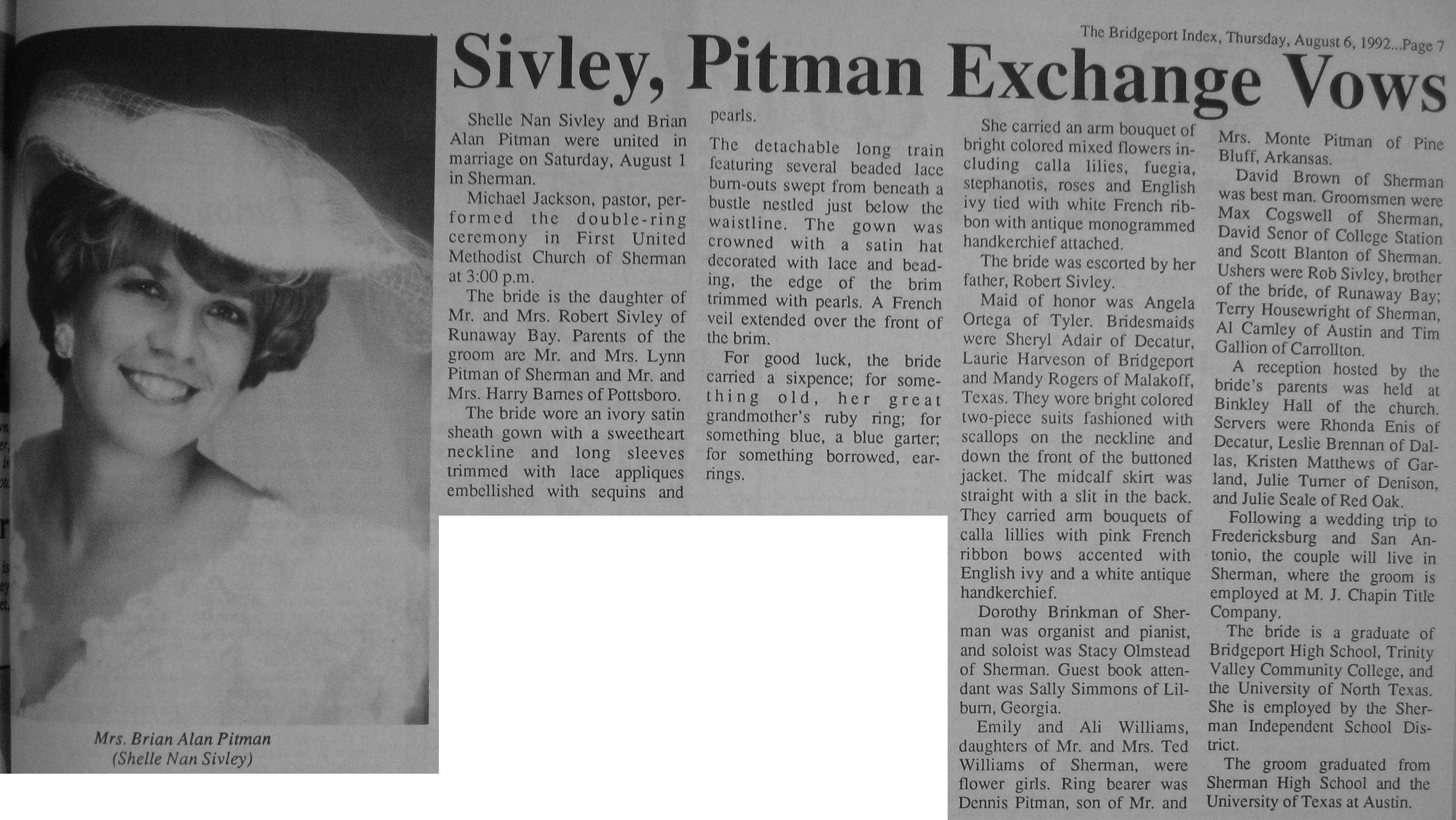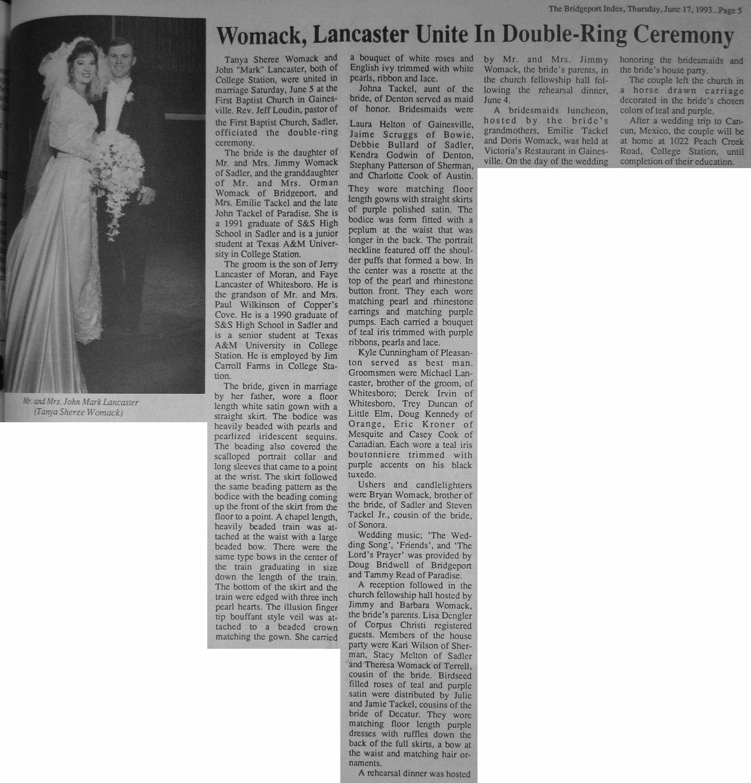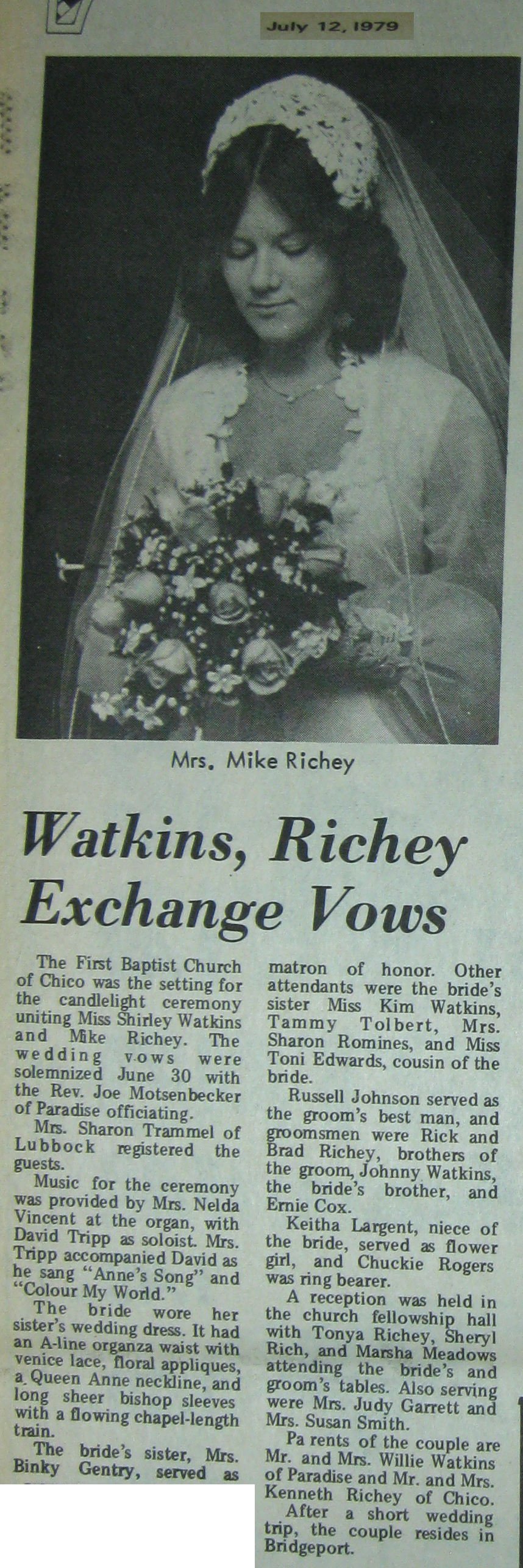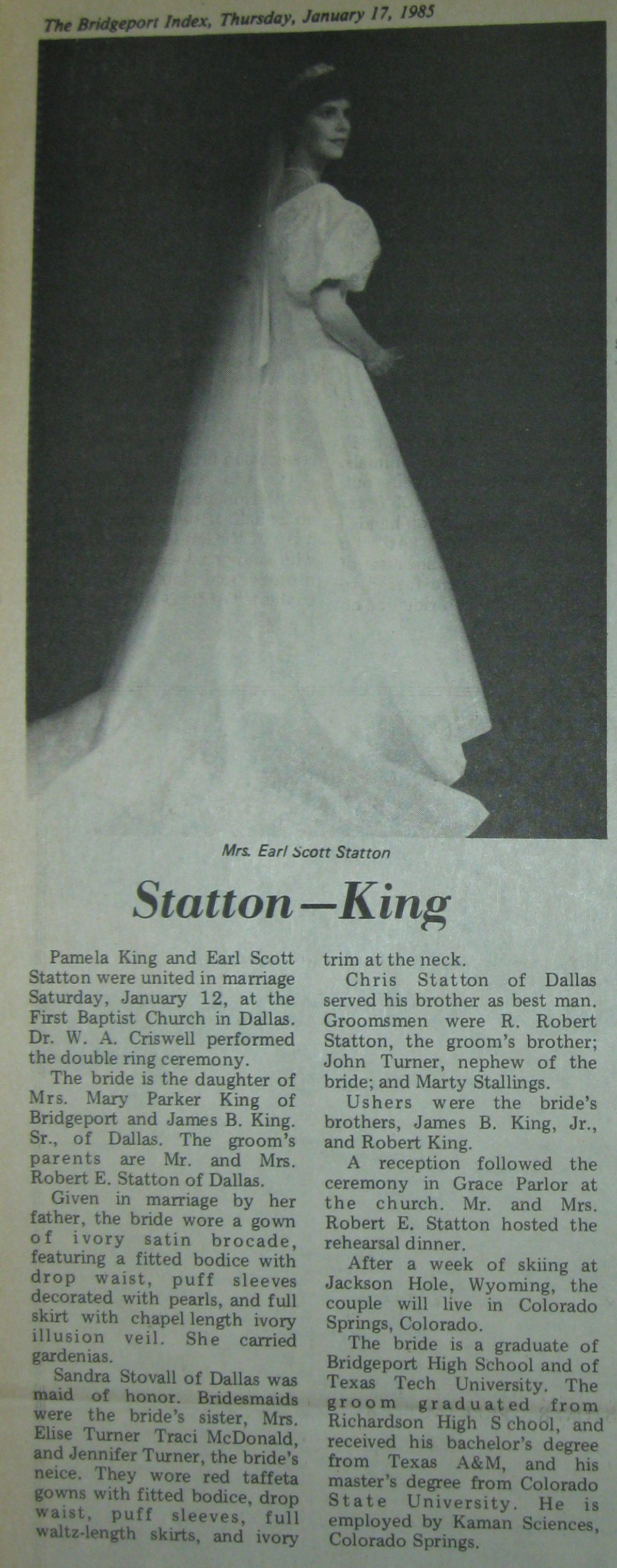 Groom or Bride's Name --- Year of Newspaper Article