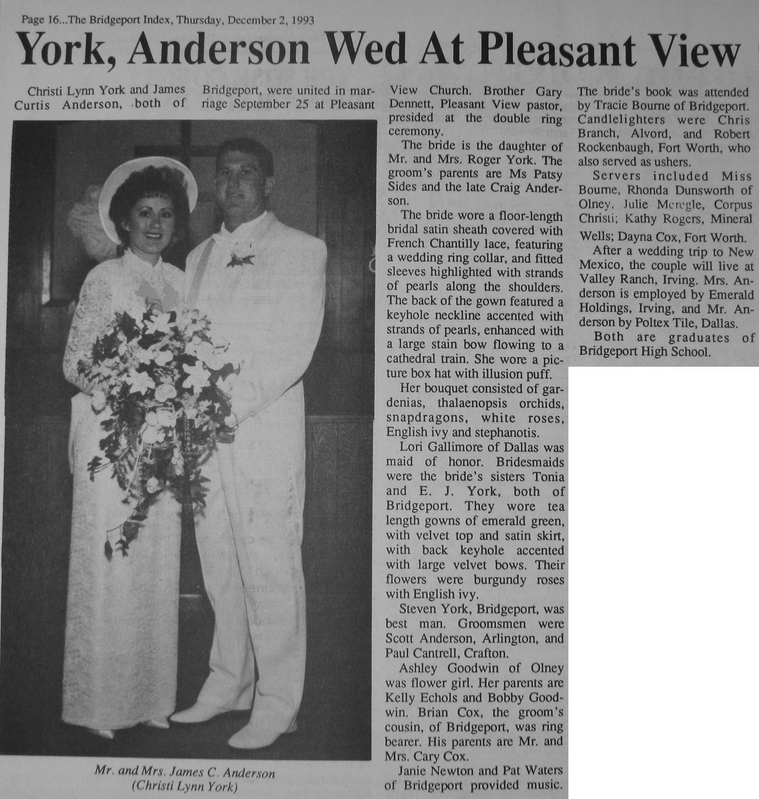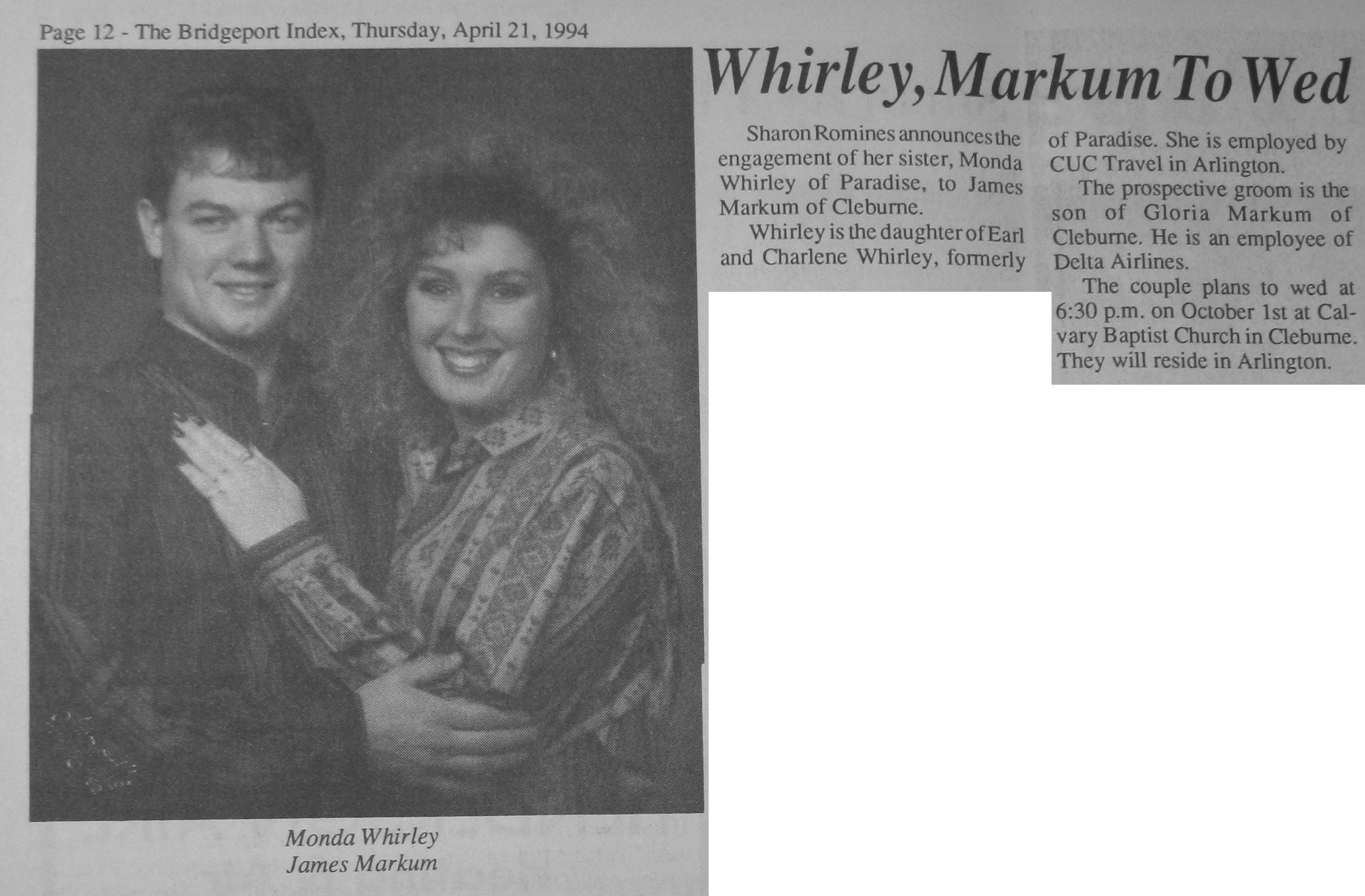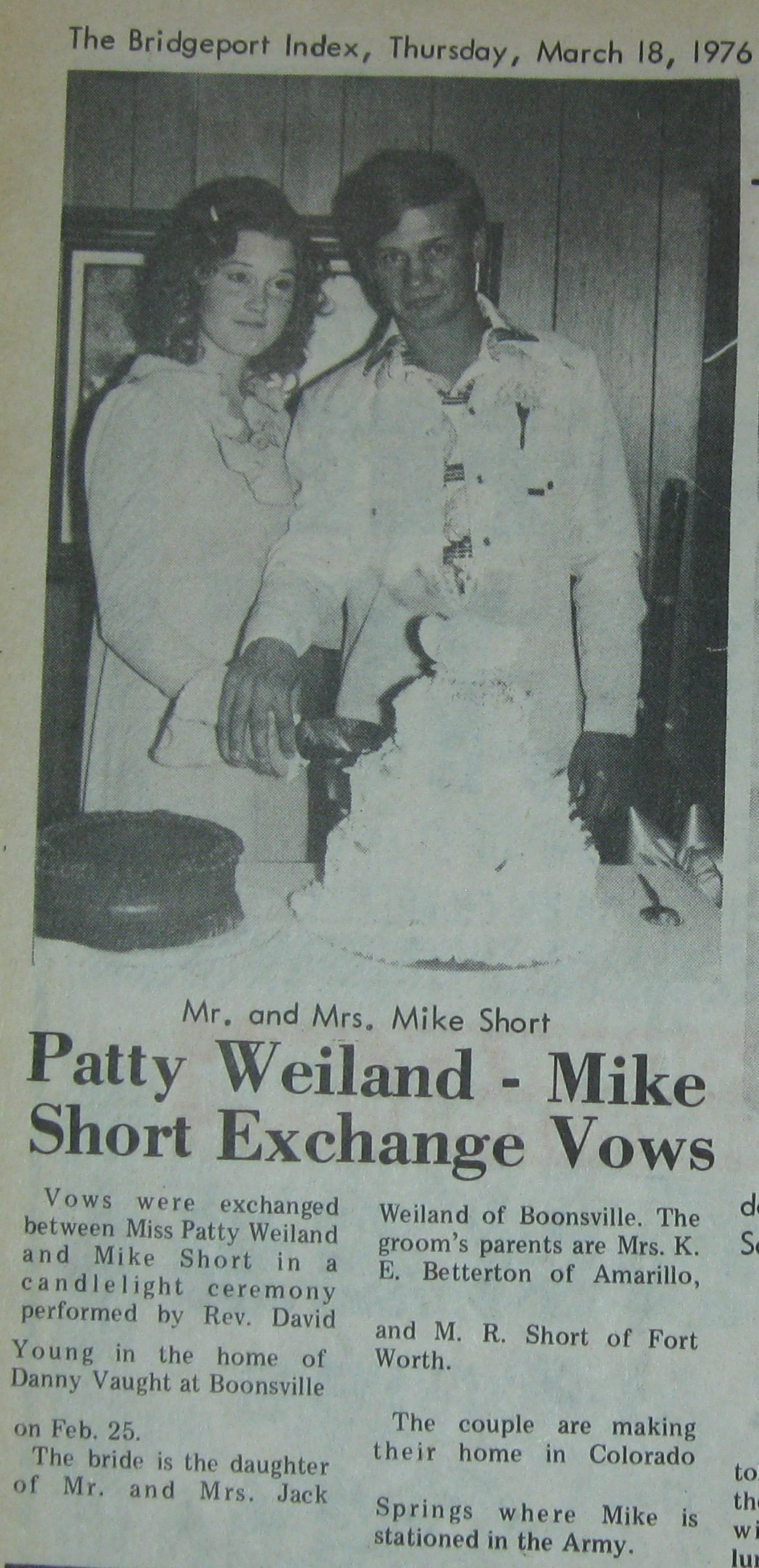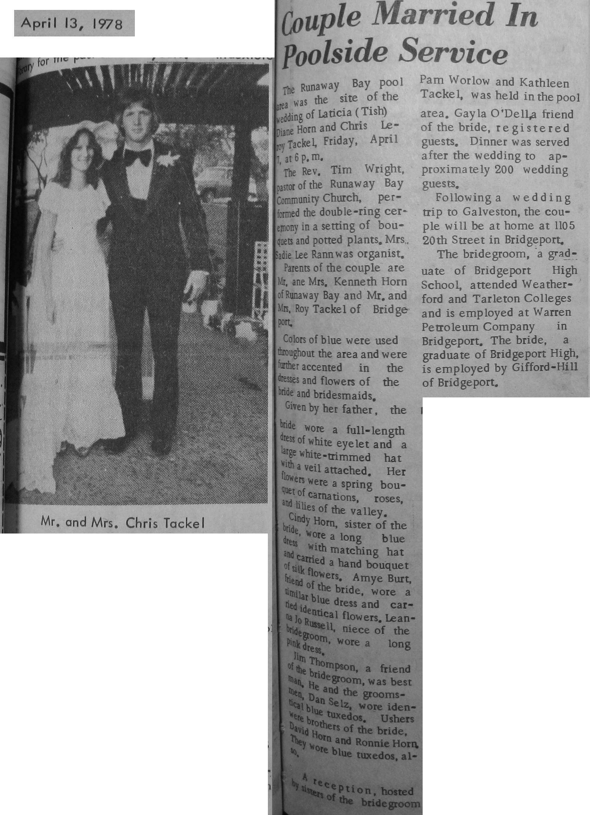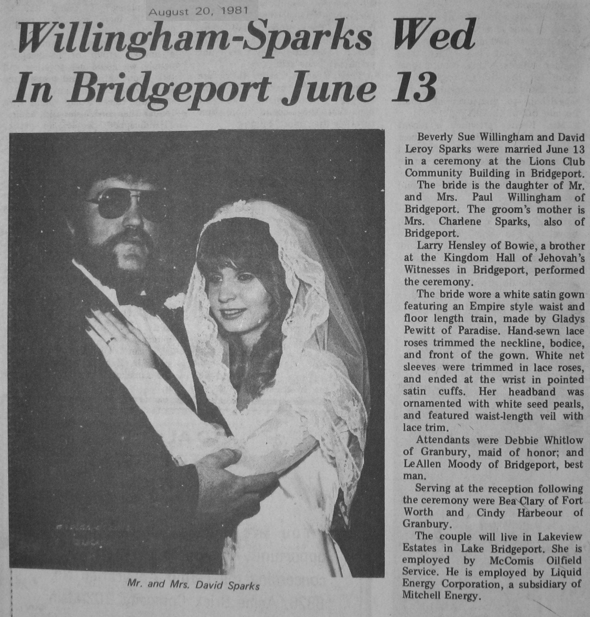 Groom or Bride's Name --- Year of Newspaper Article