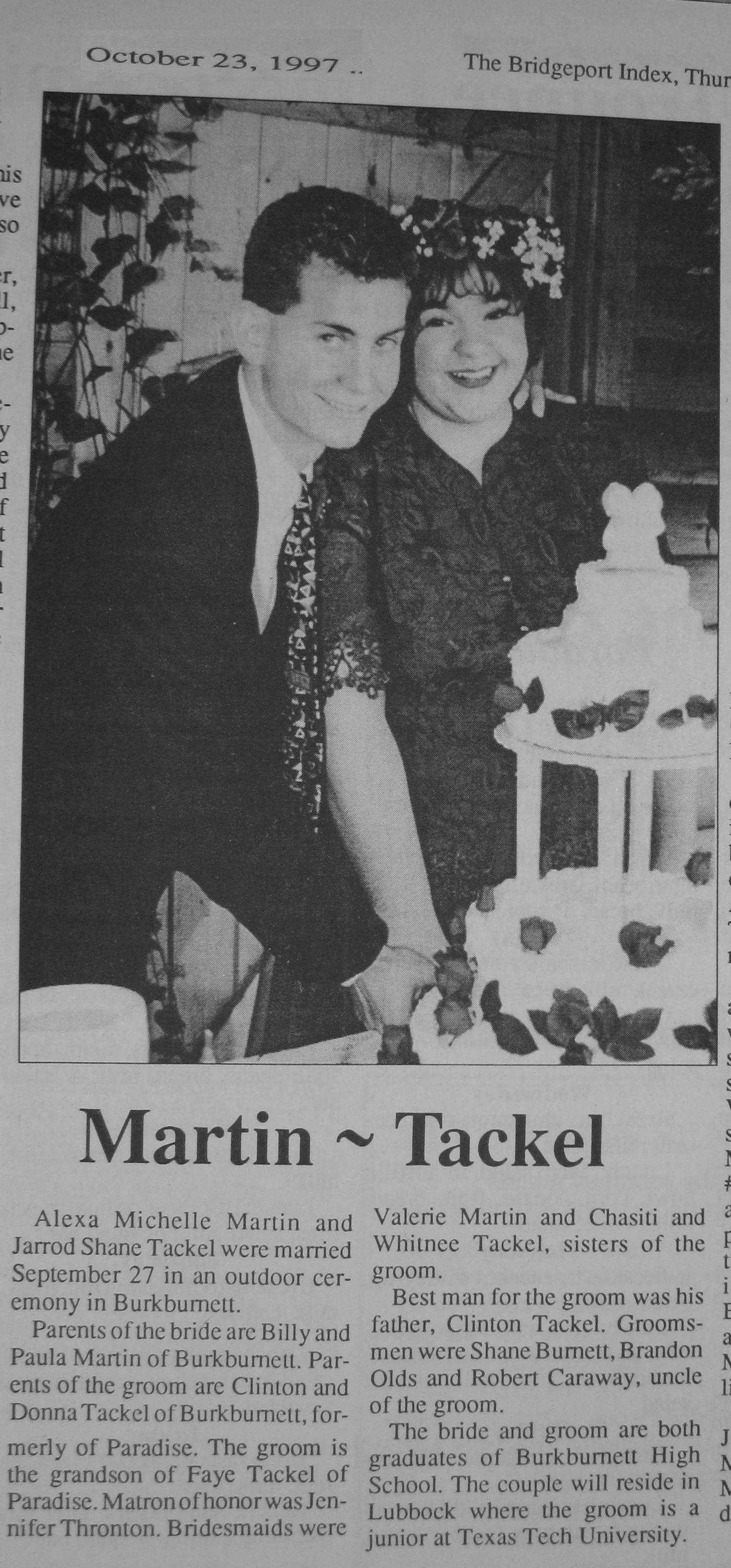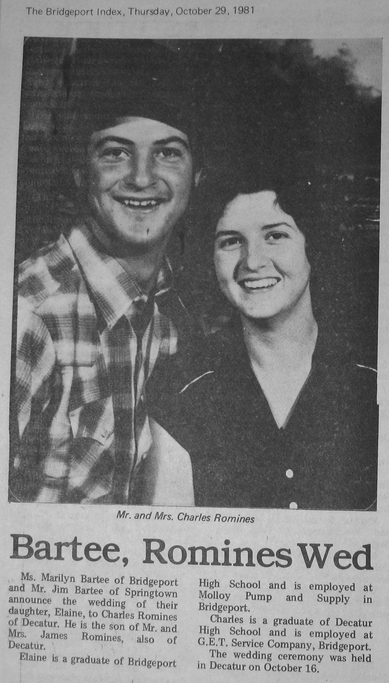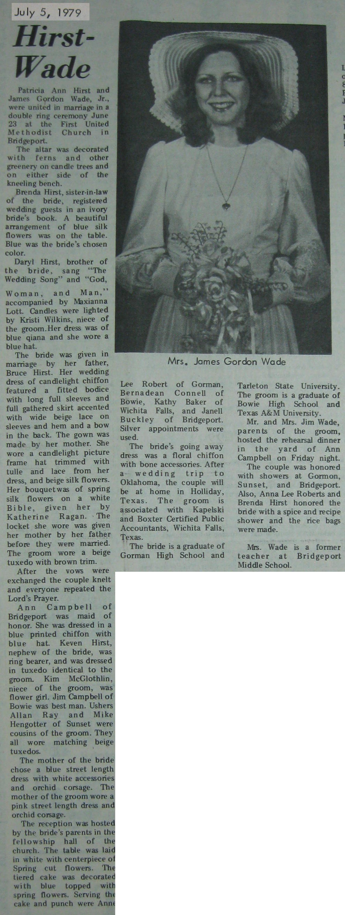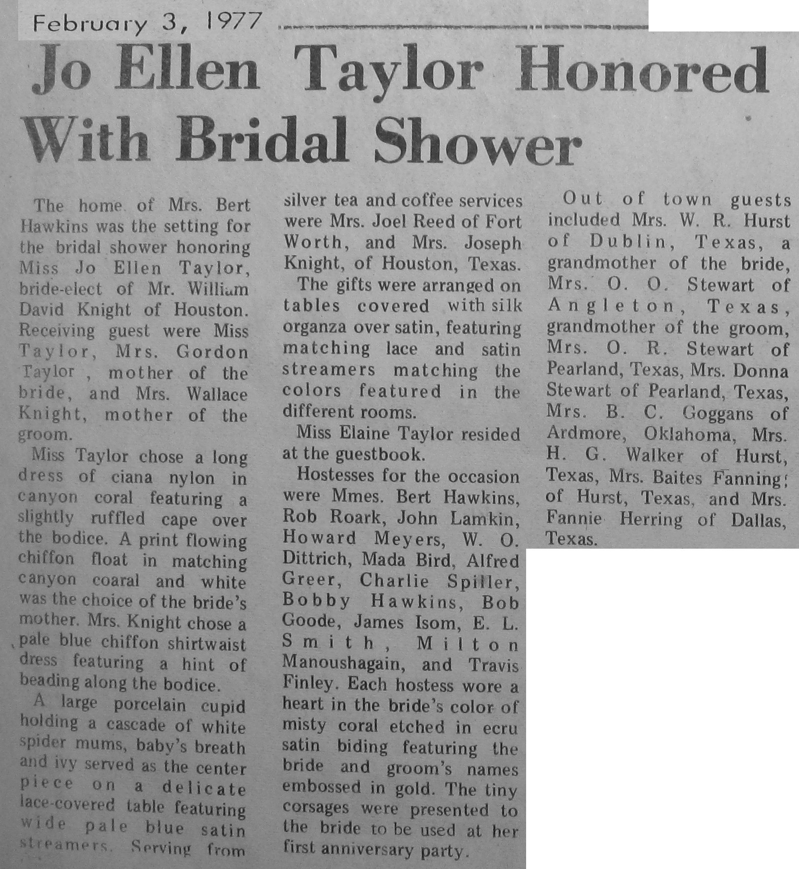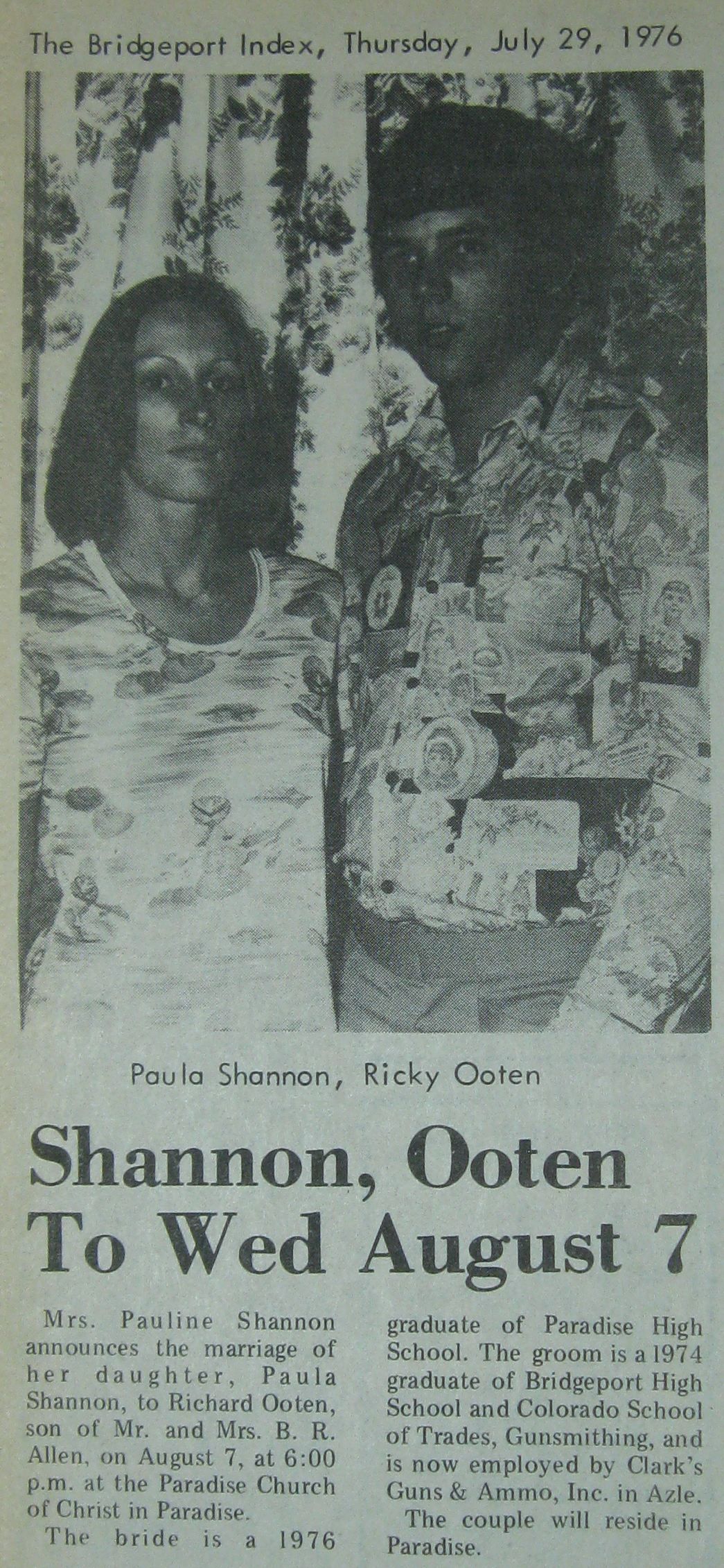 Groom or Bride's Name --- Year of Newspaper Article