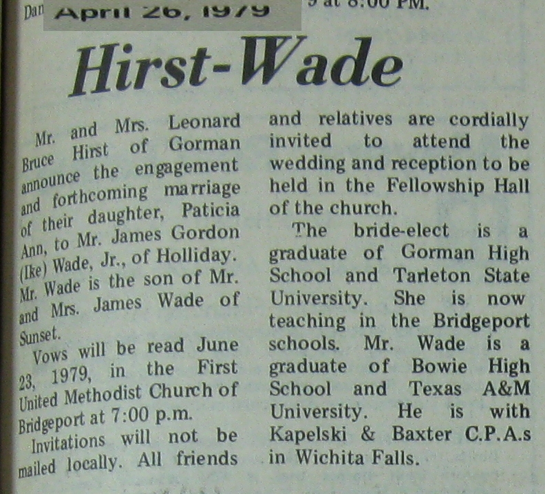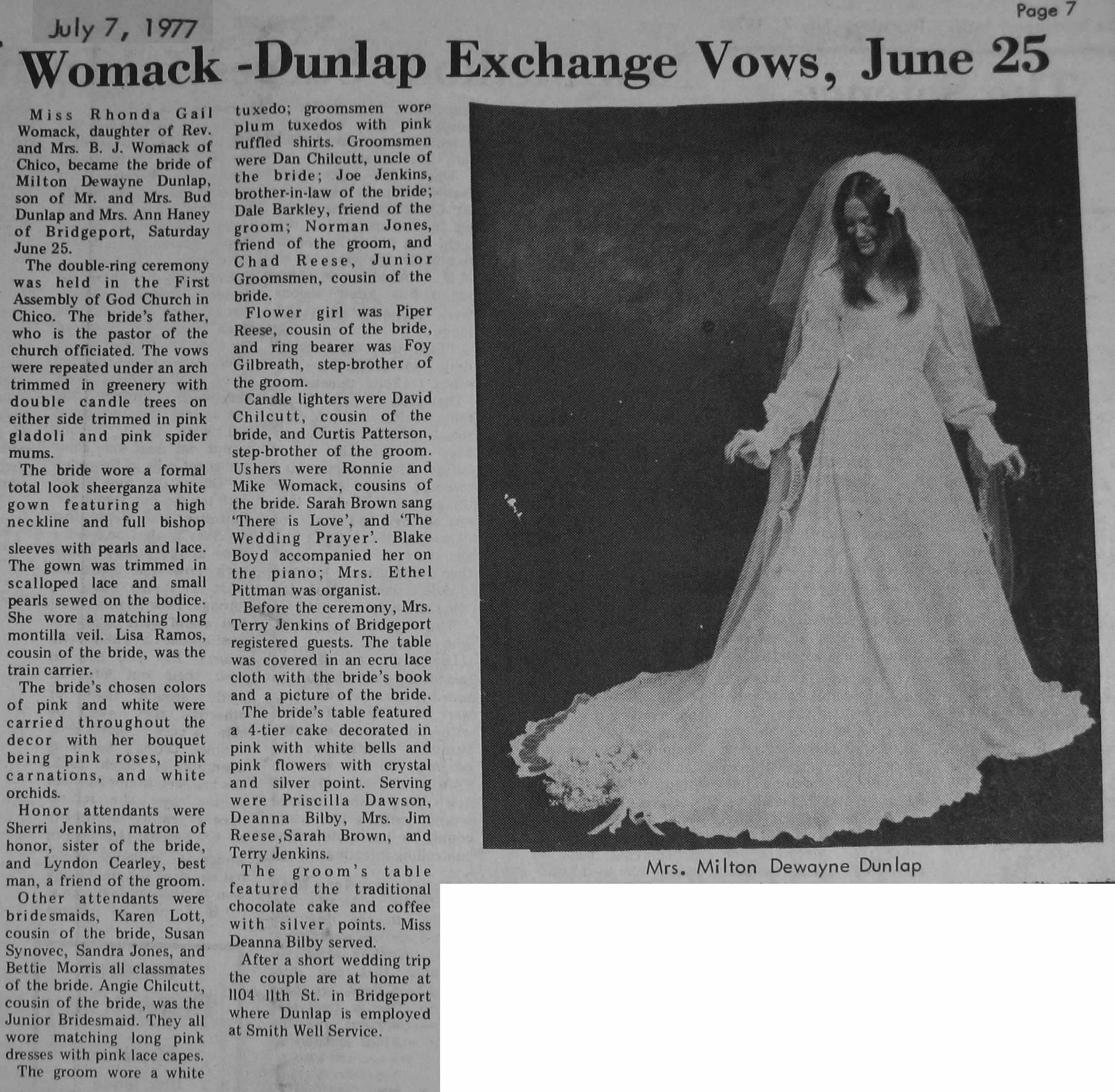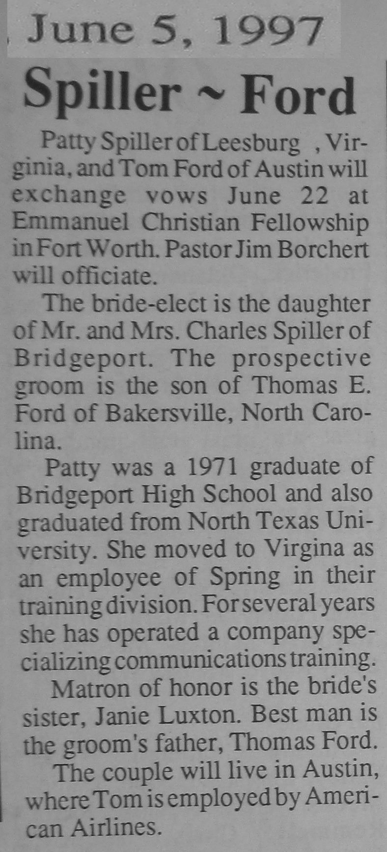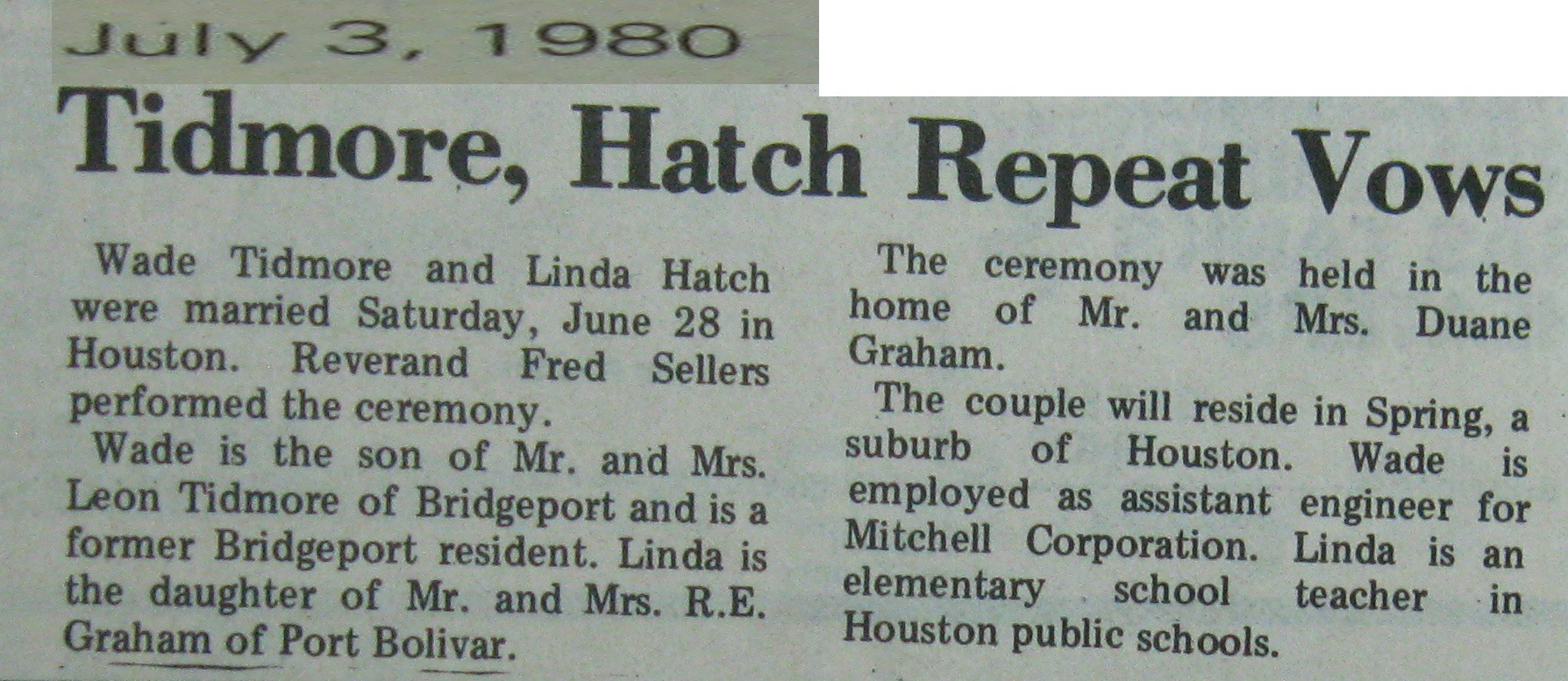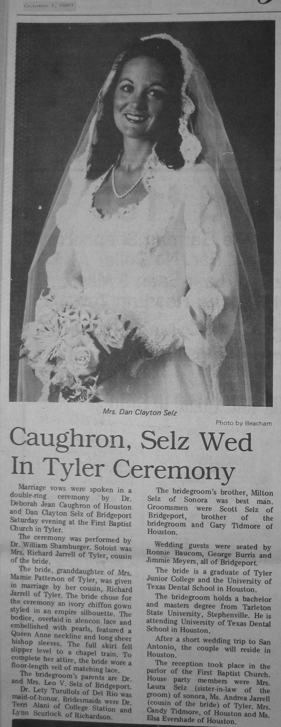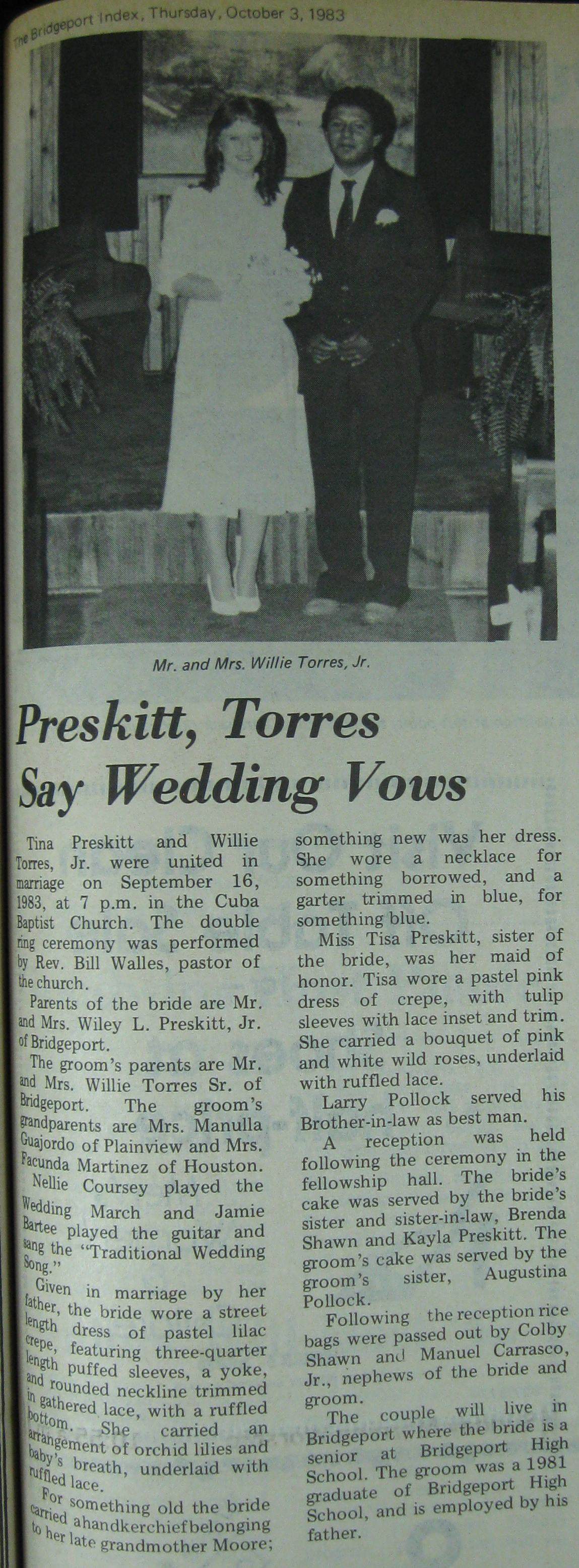 Groom or Bride's Name --- Year of Newspaper Article