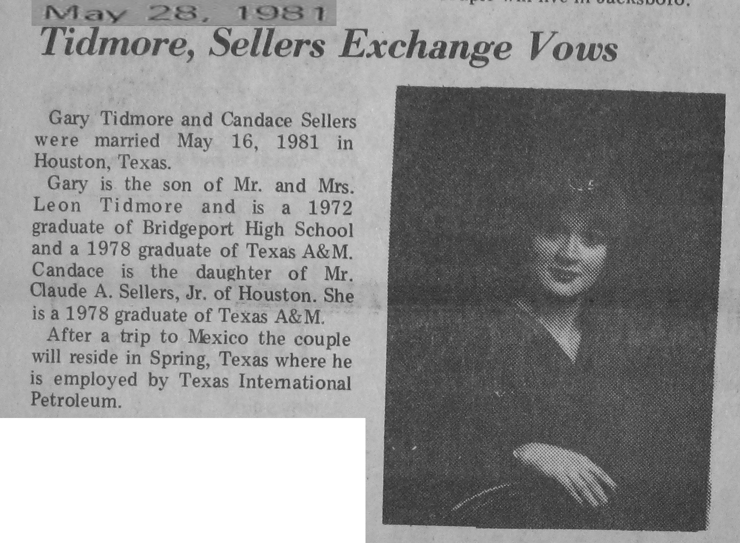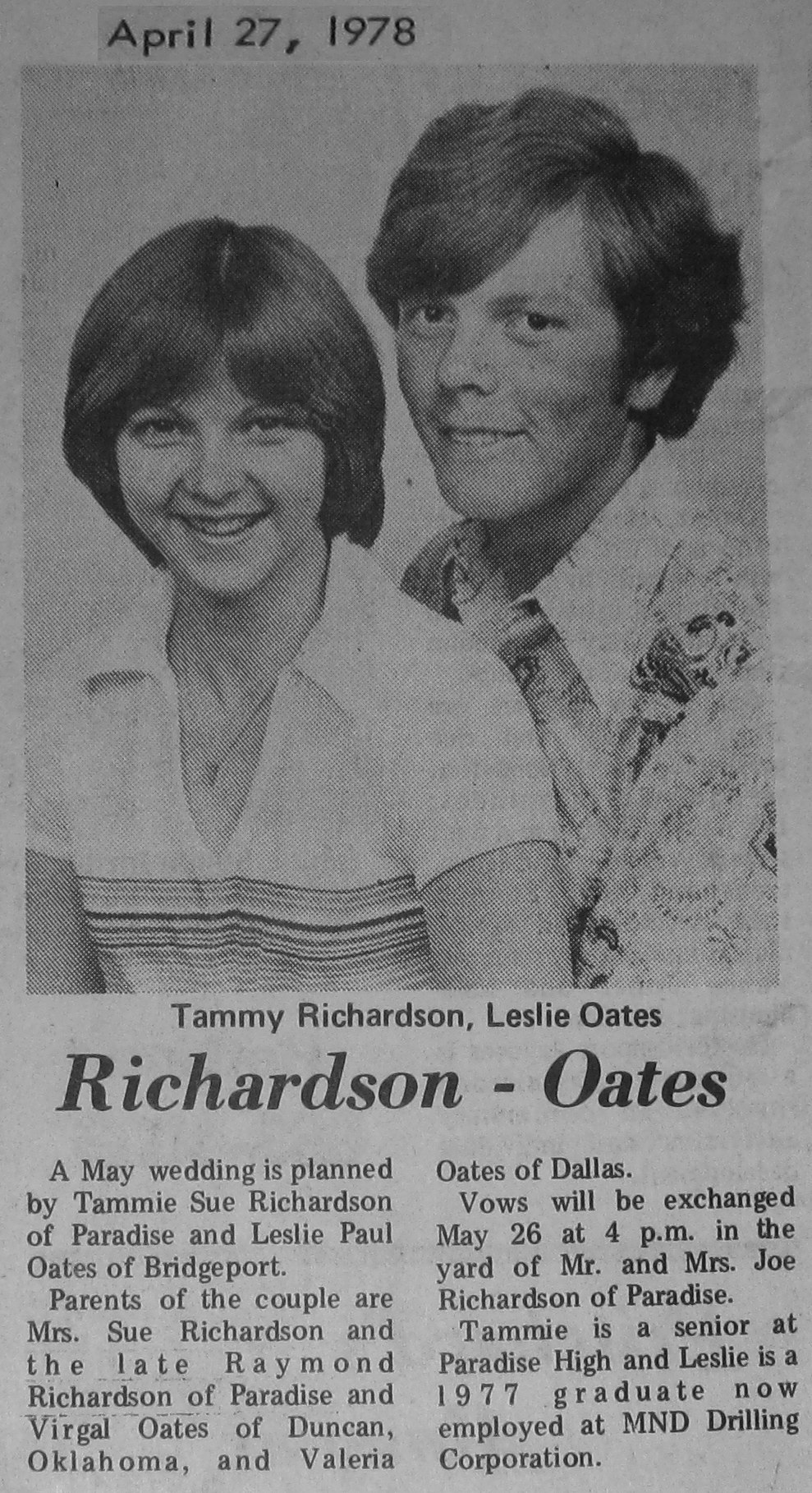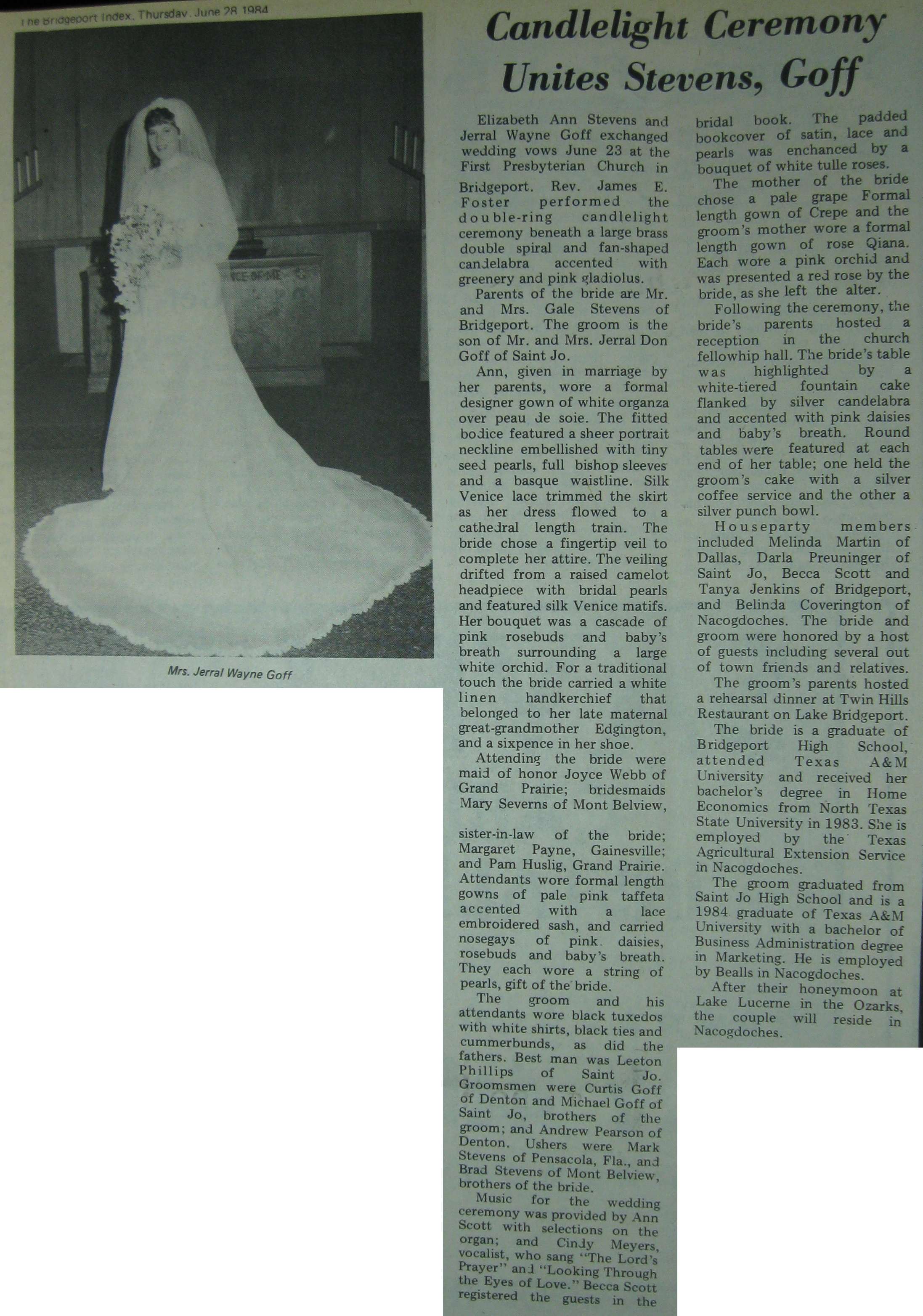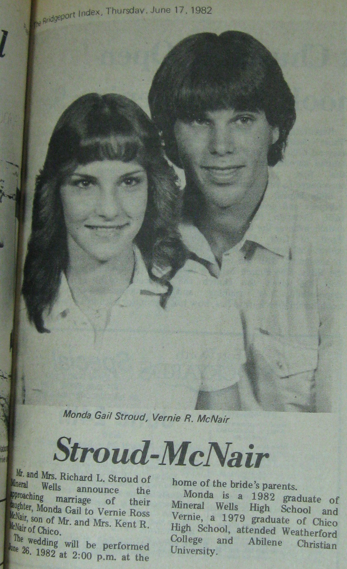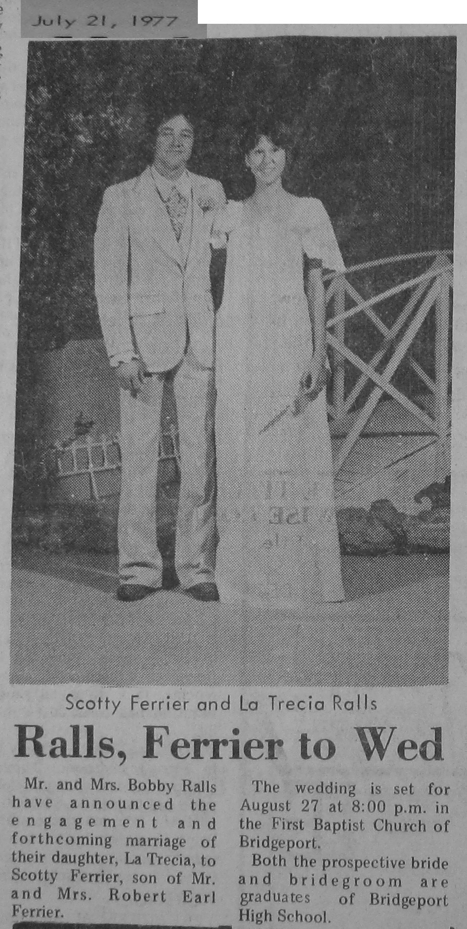 Groom or Bride's Name --- Year of Newspaper Article