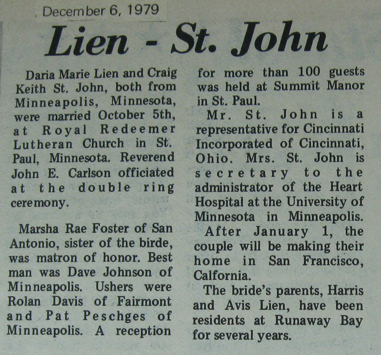 Carol Marie / Chapman, Russell Wayne ---1986